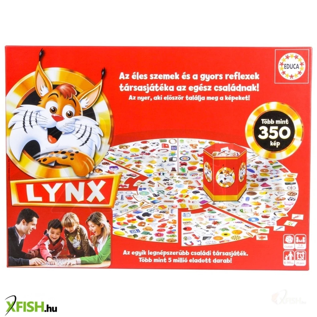 Játsszatok kétféle memória és megfigyelő társasjátékot a hiúzzal! A Lynx társasjátékhoz éles szemekre, jó megfigyelésre és gyors reflexre lesz szükségetek, mint egy hiúznak. A játéko-soknak először a játéktáblát kell felállítani, majd a játékvezető mindenkinek ad három-három kártyát, az első játékverzióban a vezető is játszhat. A kártyákat fel kell fordítani, és minél ha-marabb meg kell találniuk a táblán. Aki elsőként megtalálja a párokat, megnyeri a játékot. A másik játék változatban a játékvezető mutatja a képet, amit meg kell találniuk a játékosoknak. A játékzsetonok a pontszámokat jelölik, aki a leggyorsabb, megnyeri a játékot.