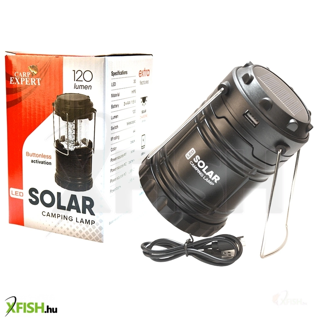A Solar egy nagyon ötletes, ledes lámpa, mely USB kábellel NEM TARTOZÉK, plusz a tetején elhelyezett napelem segítségével is tölthető. ha a belső akkumulátora lemerülne, akkor pedig 3 darab AA elemmel is használatba vehető.A 900 lumenes fényerő tökéletesen elég arra, hogy horgászhelyünk közvetlen környezetét teljesen megvilágítsa.