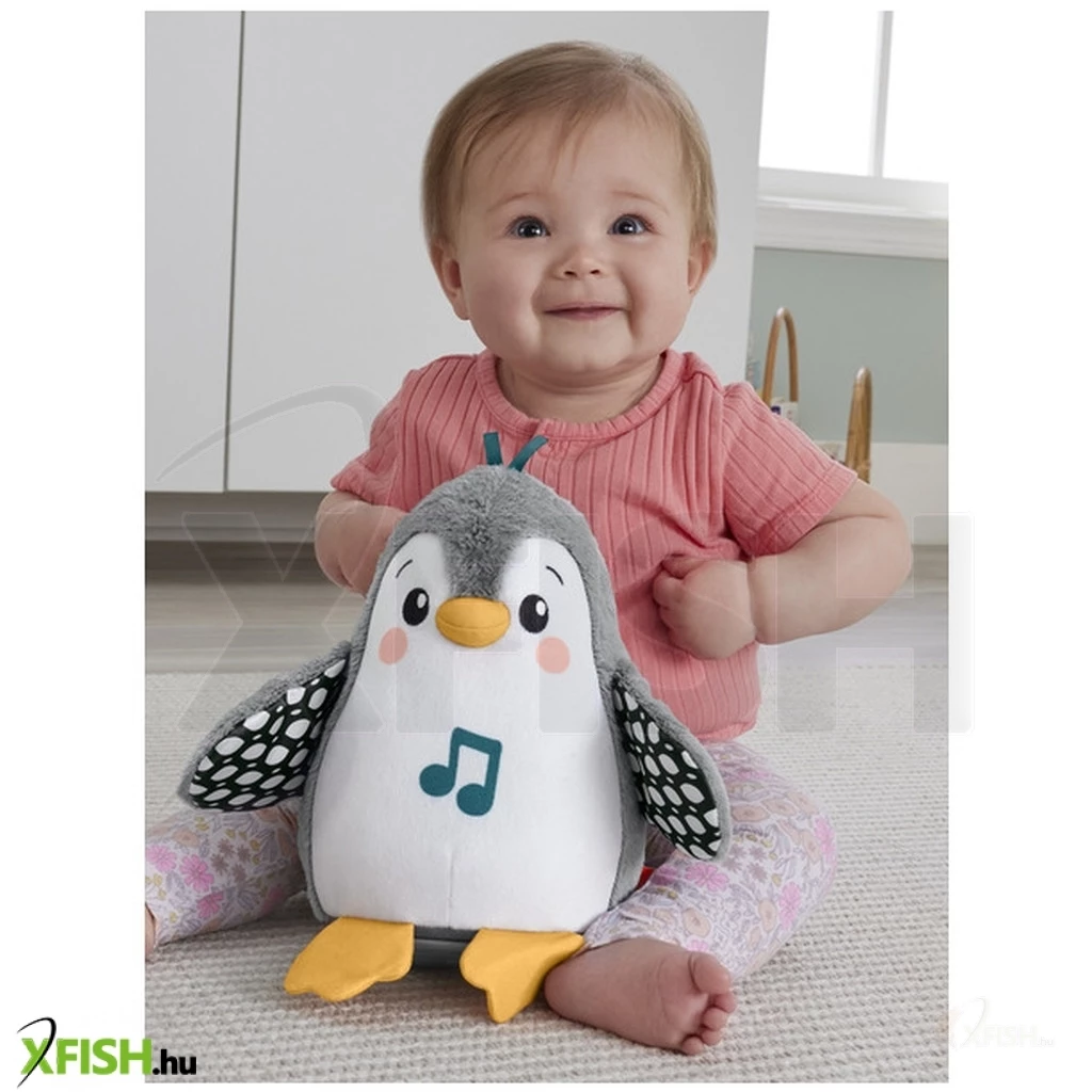 A kúszás még szórakoztatóbbá válik a Fisher-Price lágy zenei Pingvinjével. Ez a barátságos arcjáték úgy reagál a baba érintésére, hogy szárnyait csapkodja és zenél. Ahogy a baba növekszik, a pingvin arra bátorítja a kicsikét, hogy játsszon vele, halljon több mókás dallamot és lássa, ahogy mozog. A fekete-fehér színek, a lágy textúra, a kis lábak és a játékos zene segíti a baba vizuális, tapintási és hallási érzékeinek fejlesztését. Kis pingvin, amely zenéléssel és szárnycsapkodással reagál babája érintésére. 2 zenelejátszási mód akár 10 perces zenével és hangokkal Együtt nő a babával a kúszástól az ülőjátékig. A színek segítik a baba látásának fejlesztését, míg a puha, sima és csillogó textúrák javítják a tapintást és a hallást. Segít a babának megtanulni a cselekvés-reakció fogalmát, és születésétől kezdve ösztönzi a kúszást és minden érzékszerv fejlődését.