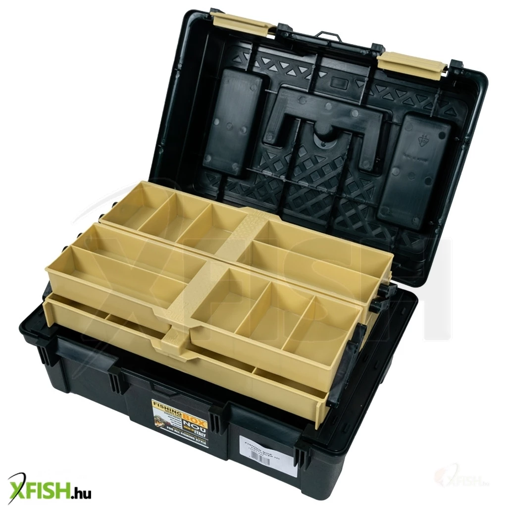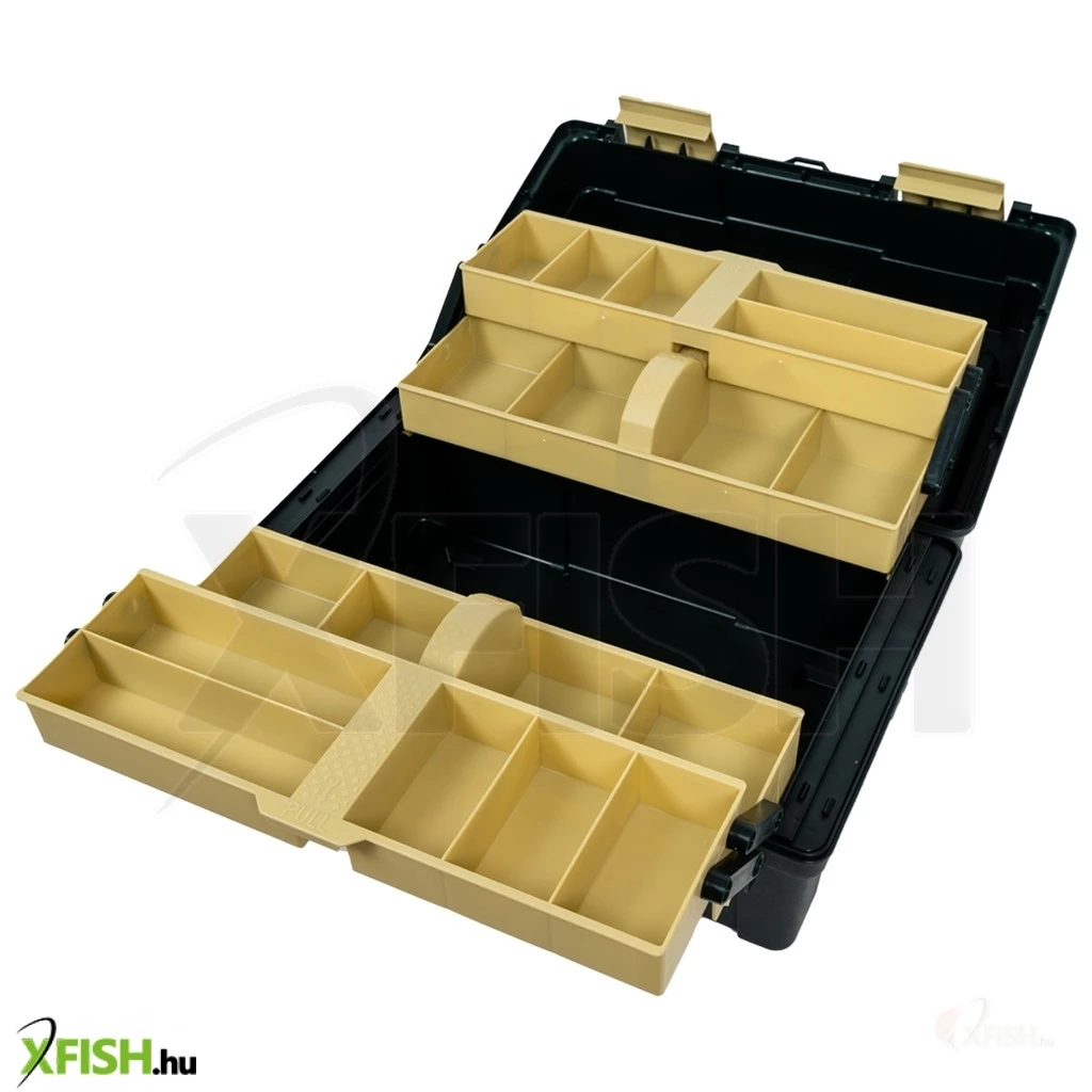 Erős, robusztus felépítésű szerelékes láda, mely nagyméretű belterével, két oldalra harmonikaszerűen nyitható tálcáival és rekeszeivel minden kiegészítőnket képes „elnyelni". Főleg olyan horgászoknak ajánljuk, akik nagy mennyiségű horgászfelszereléssel rendelkeznek, és ezeket szeretik precízen, rendezetten tárolni. Horgászat alkalmával csak be kell rakni a csomagtartóba és már indulhatunk is horgászni, garantáltan minden szükséges kiegészítő elfér benne. Masszív hord füllel és jól zárható strapabíró csatokkal szerelték. A doboz szükség esetén lelakatolható. Ezt az univerzális szerelékes ládát a mindennapi élet számos területén alkalmazhatjuk, használhatjuk. Kiválóan alkalmas szerszámok, csavarok, és egyéb eszközök tárolására, és szállítására.