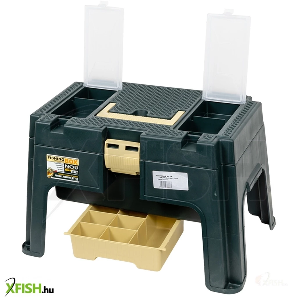 Ha nem akarunk külön ülőkét és szerelékes dobozt cipelni, akkor a megoldás a PRATICO horgász ülőke. Minden helyen stabilan lerakható, sokan még a csónakos horgászatok alkalmával is nagy előszeretettel alkalmazzák. Fedelében az apróságok, a belsejében pedig a teljes kiegészítő felszerelésünket tárolhatjuk. Az ülőke alá rejtetett tálcák és fakkok sokrétű felhasználást biztosítanak. Tökéletesen elférnek benne a napi horgászathoz hasznos és szükséges kellékek. Fontos ! Ezt az univerzális szerelékes ládát a mindennapi élet számos területén alkalmazhatjuk, használhatjuk. Kiválóan alkalmas szerszámok, csavarok, és egyéb eszközök tárolására, és szállítására.