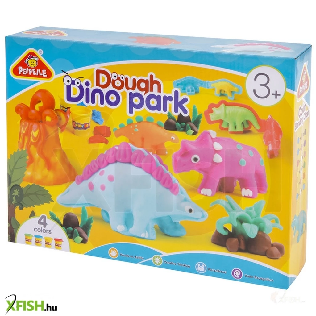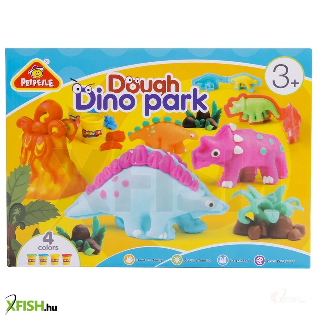 Szeretnél dínó figurákat készíteni- Ezzel a gyurma készlettel igazán egyszerűen megteheted. A készletben találsz 4 tégely különböző színű gyurmát, és különleges kétoldalú formákat, amikkel szuper 3D-s dínós gyurma figurákat készíthetsz, amik még a lábukon is megállnak. Ha a dínók elkészültek, jöhetnek a kövek és a növények, esetleg egy vulkán- A kreatív készletben minden eszközt megtalálsz, amire csak szükséged lehet, hogy életre keltsd az őskori tájakat.