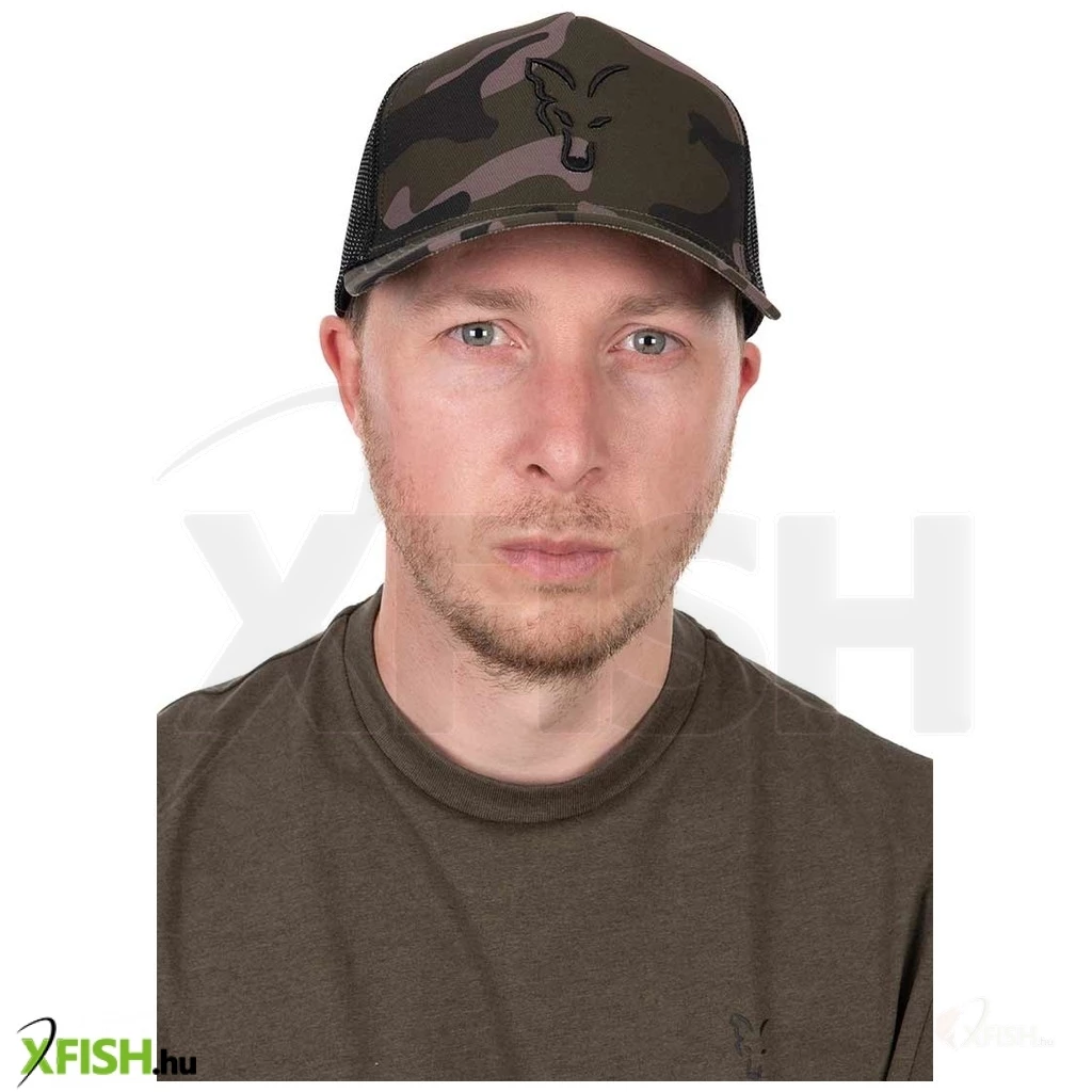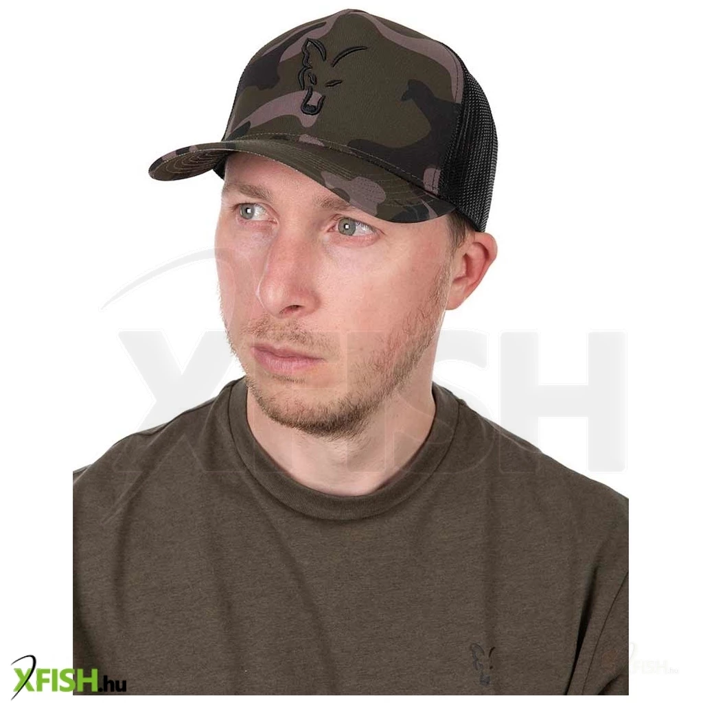 KategóriákKategóriákHorgász Ruházat Sapka Fox Black Camo Trucker Baseball Sapka
