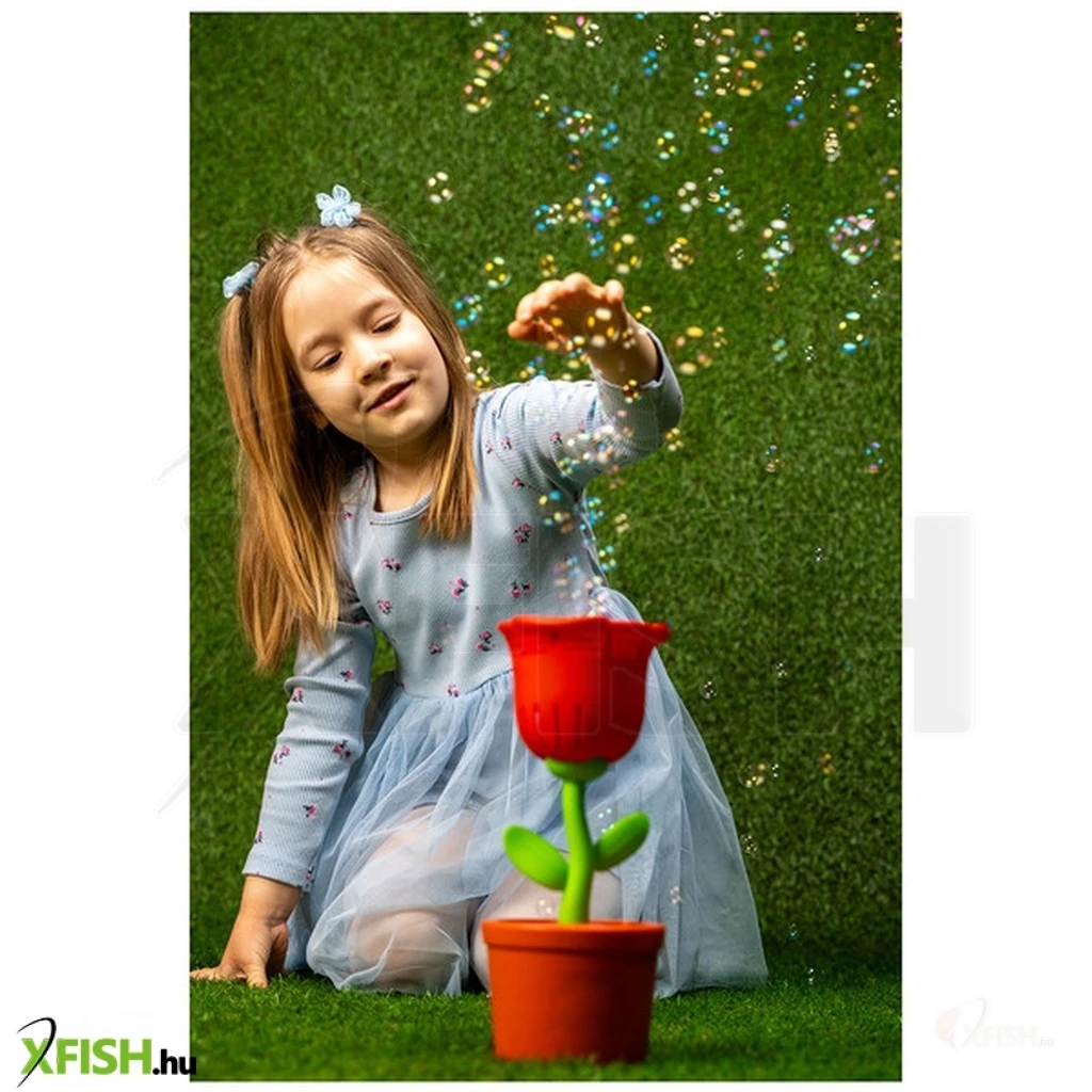 A Frublu bubigép rózsa látványos buborékfújó játék, amely pillanatok alatt rengeteg szappanbuborékot hoz létre. A rózsa formájú kialakítás különlegessé teszi a játékot, miközben a beépített mechanika automatikusan fújja a buborékokat, így a gyerekek könnyedén élvezhetik a buborékok varázslatos világát.
