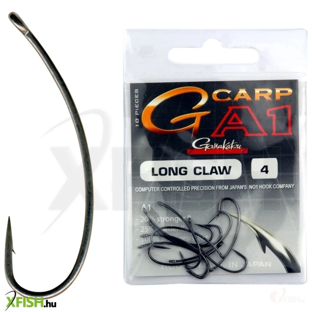 A G-Carp A1 Long Claw horog vékony huzalból készül, nem túl szembetűnő, borotvaéles és befelé mutató horogpontja van. A hosszú, hajlított szár és rövid hegy nagyon erős akadást biztosít.