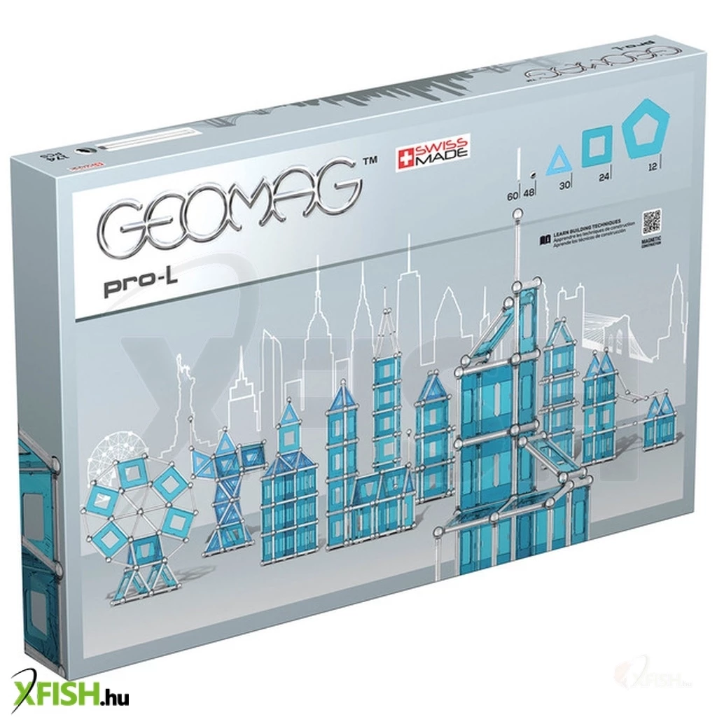A készlet négyzet és háromszög alakú panelekkel is bővült, amelyekkel az elkészült alakzatokat befedhetik, így még teljesebbé tehetik az építményeket. A Geomag Pro-L sorozat erősebb mágnesekkel és látható polaritással rendelkezik, ami még nagyobb kihívást és szórakozást nyújt a haladó építők számára.