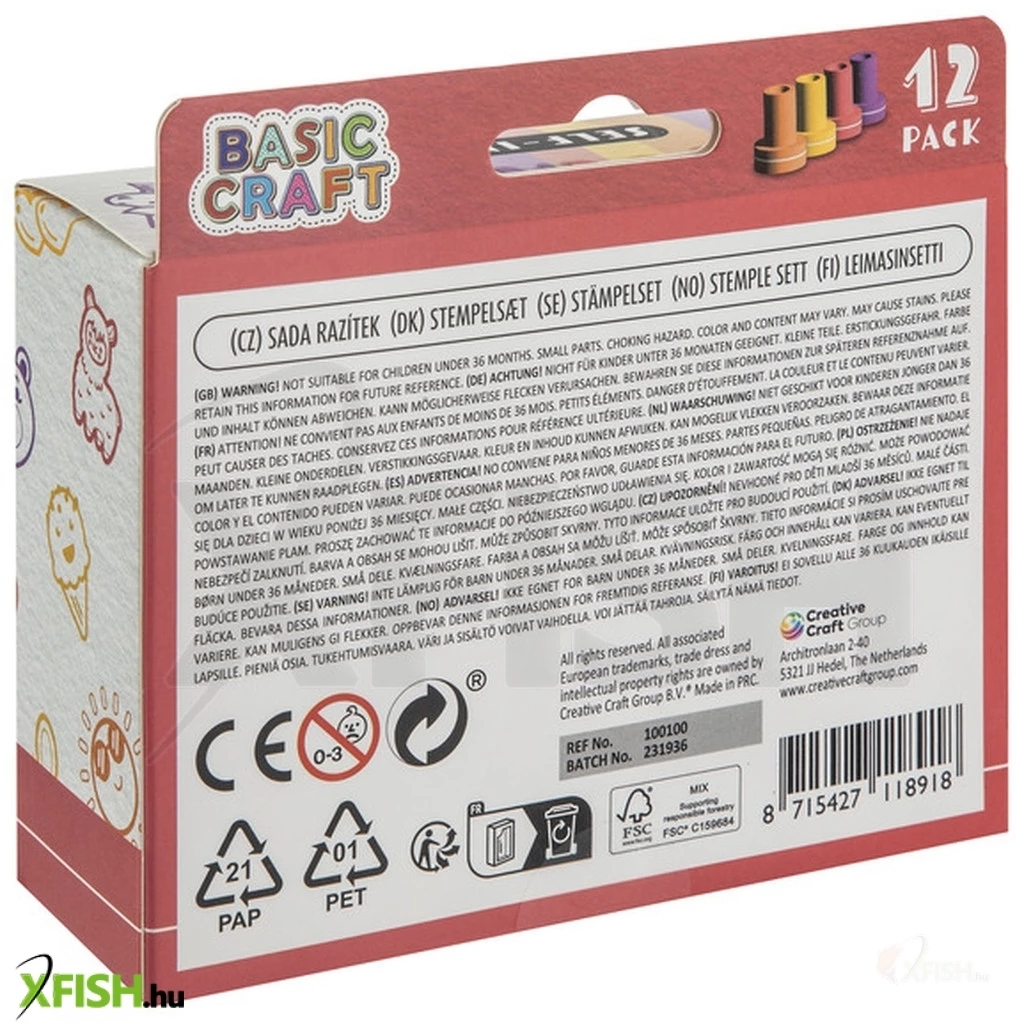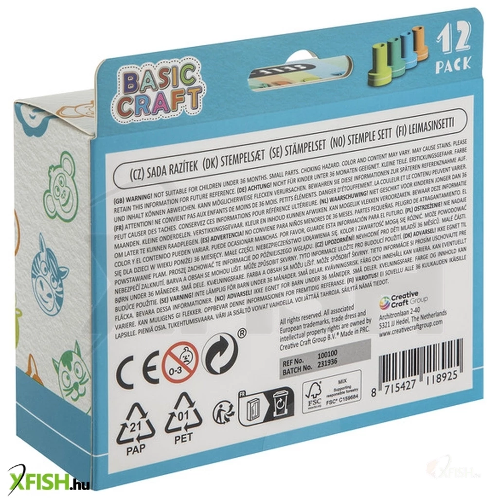 Nyomda tintapárnával, 12 db /doboz A 12 darabos nyomdakészlet tintapárnával egy kreatív eszköz, amely lehetővé teszi a gyerekek számára, hogy különböző mintákat és formákat nyomtassanak papírra vagy más felületekre. A készlet 12 különböző mintájú nyomdát és egy tintapárnát tartalmaz, így azonnal használatra kész. Főbb jellemzők: Darabszám: 12 nyomda és 1 tintapárna Használat: Kreatív alkotásokhoz, rajzok díszítéséhez Ez a nyomdakészlet remek választás, ha szeretnéd ösztönözni a gyerekek kreativitását és kézügyességét.