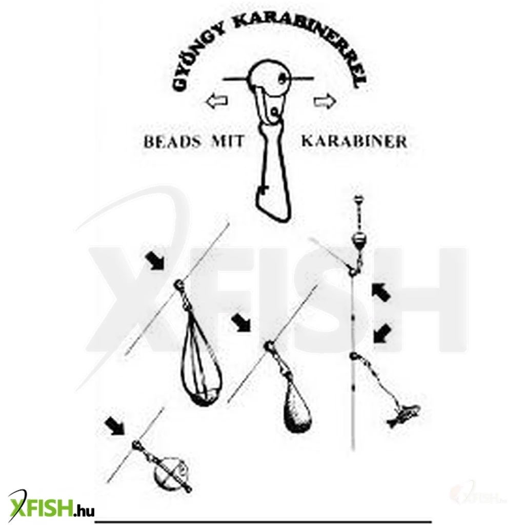 Számtalan horgászmódszernél használható aprócikk, amivel a főzsinórhoz rögzíthetjük az úszót, ólmot, előkét, etetőkosarat, vagy akár a csalihalat is. Egy csomag 5db fekete színű karabinerrel ellátott gyöngyöt tartalmaz.
