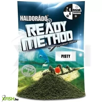 A Ready Method keverékek közül 4 évszakos, azaz egész évben eredményesen használható etetőanyag különlegesség, a Pisty, amely egy durva halas etetőanyag a kedvelt zöld színben. Ez nem más, mint különféle magas fehérjetartalmú pelletek őrleménye. Különösen hatékony olyan vízterületeken, ahol a pontyokat főként a halas dolgokkal lehet horog közelébe csalni és megfogni.