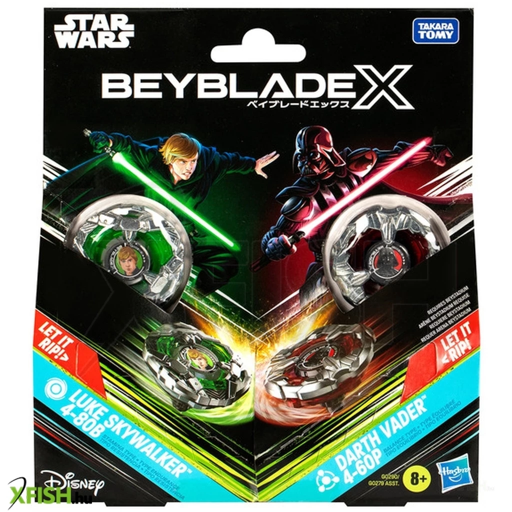 Beyblade x Star Wars multipack Ez a szett a klasszikus apa-fiú párharcot hozza el a Beyblade arénába. Luke Skywalker 4-80B: Jobbra forgó, kitartás típusú pörgettyű, amely hosszú ideig képes a pályán maradni. Darth Vader 4-60P: Jobbra forgó, egyensúly típusú pörgettyű, amely stabilitást és támadóerőt egyesít. Tartozékok: 2 indító szerkezet. Ez a csomag ideális választás a klasszikus Star Wars rajongóknak és a Beyblade gyűjtőknek egyaránt.