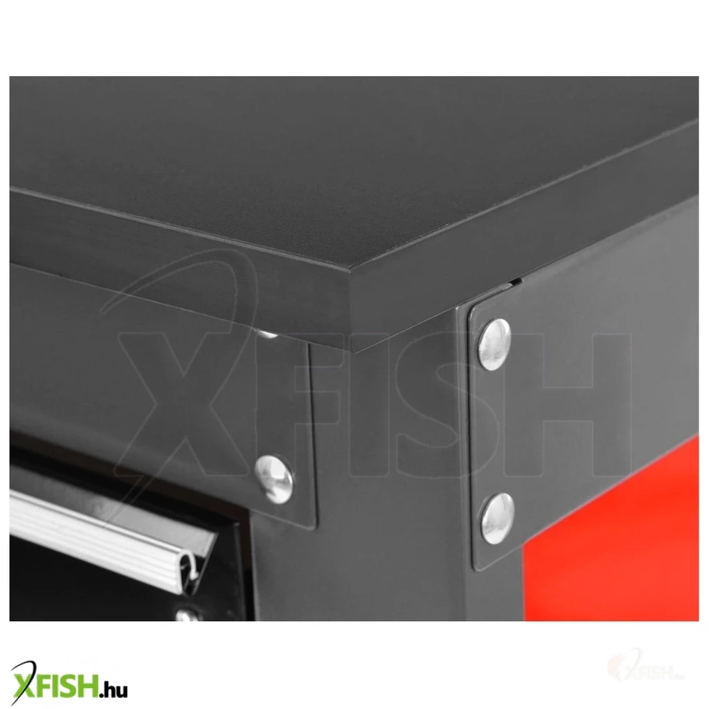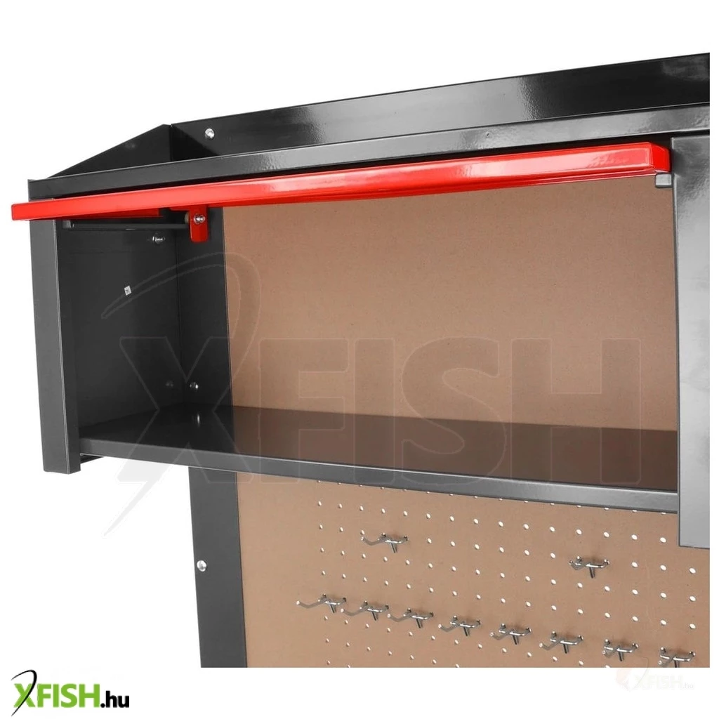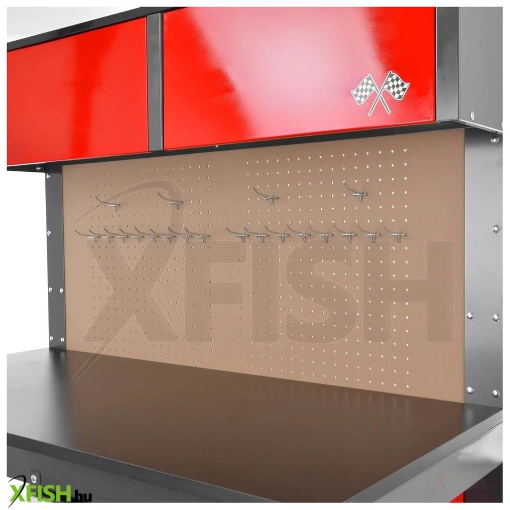 Műhelyasztal 450 kg teherbírással. Stabil fémszerkezet. Ideális bármilyen műhelybe. Rendezze magát – az asztalon 3 sekély és egy mély fiók található a szerszámok tárolására. Két felső szekrény és egy hátlap állítható kampókkal a szerszámok felakasztására. Méretei 120 x 58 x 174 cm. Súlya 53 kg.