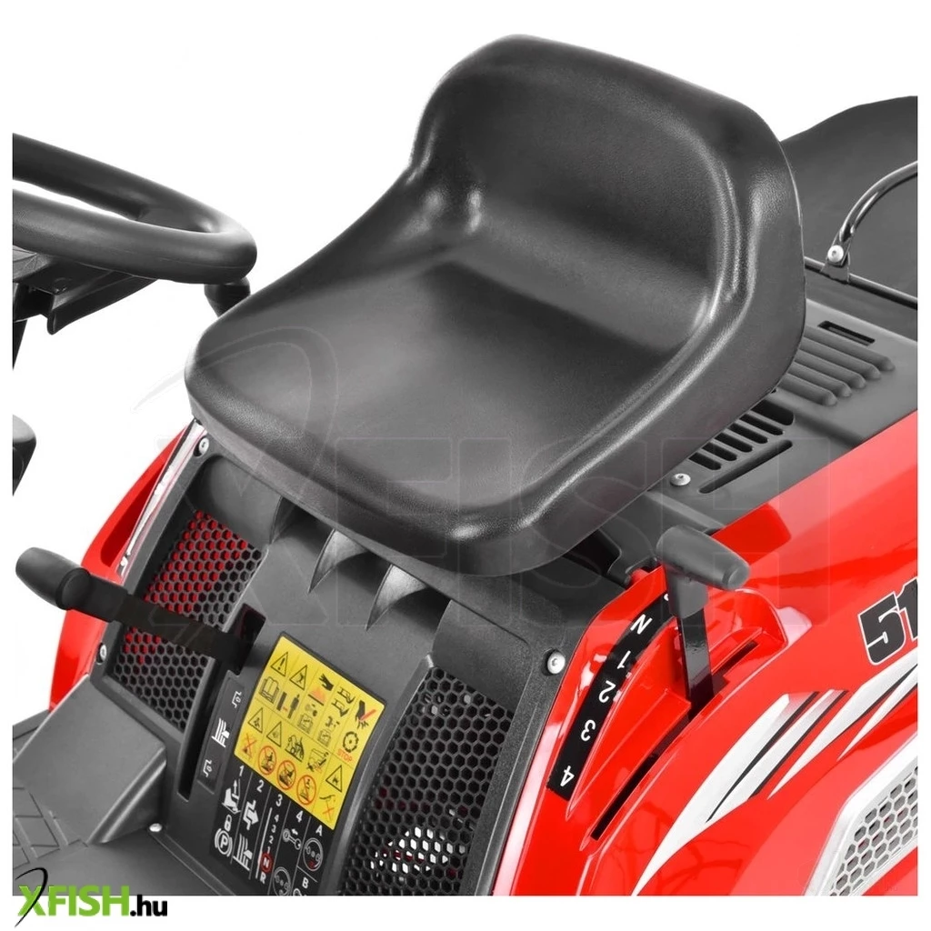 Az elektromos indítóval és a központi vágási magasság állítás funkcióval a traktor kezelése egyszerű és felhasználóbarát. A vágási magasság 30 és 90 mm között állítható, így a fű állapotától és az adott terület igényeitől függően könnyedén testre szabható. A különböző sebességfokozatok – 1,45-4,3 km/h előre és 1,7 km/h hátra – biztosítják, hogy a munkavégzés során mindig az adott talaj- és munkakörülményekhez igazodhatunk.