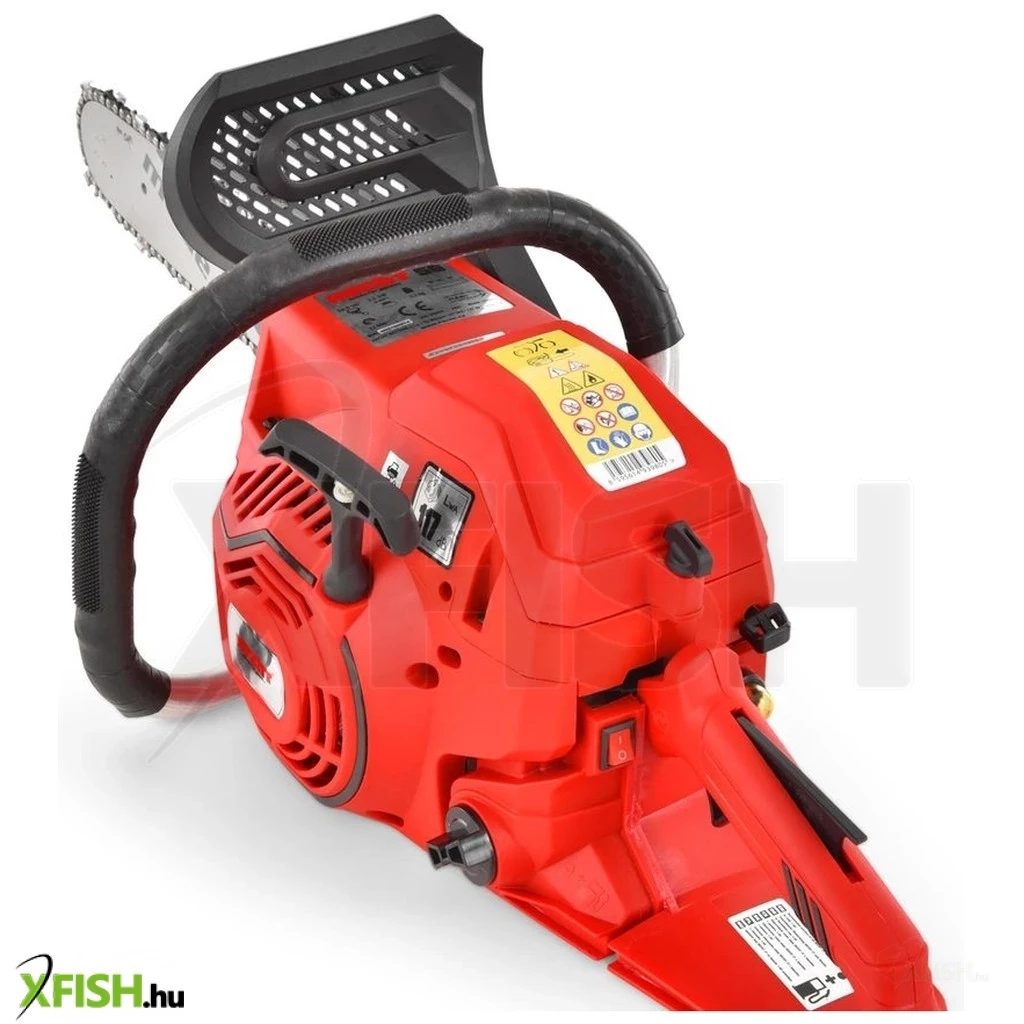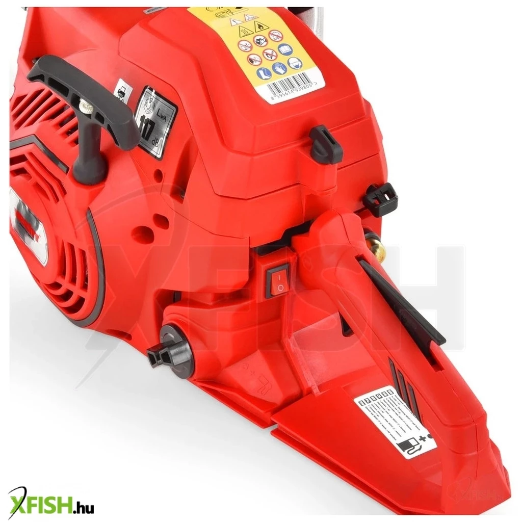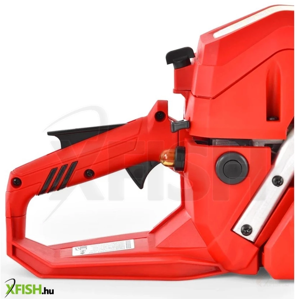 A termék kiemelten ügyel a biztonságra: a fűrész biztonsági fékkel van felszerelve, ahol a lánc leállási ideje csupán 0,1 másodperc a maximális sebességről. A kioldóelemek a fő fogantyún olyan helyen vannak elhelyezve, amelyek minimalizálják a lánc akaratlan elindulását. Az acél fogtámasz megakadályozza, hogy a fűrész kiugorjon a vágásból, például a lánc hirtelen megakadása esetén. Ezek az elemek biztosítják a biztonságos használatot, még szélsőséges körülmények között is.