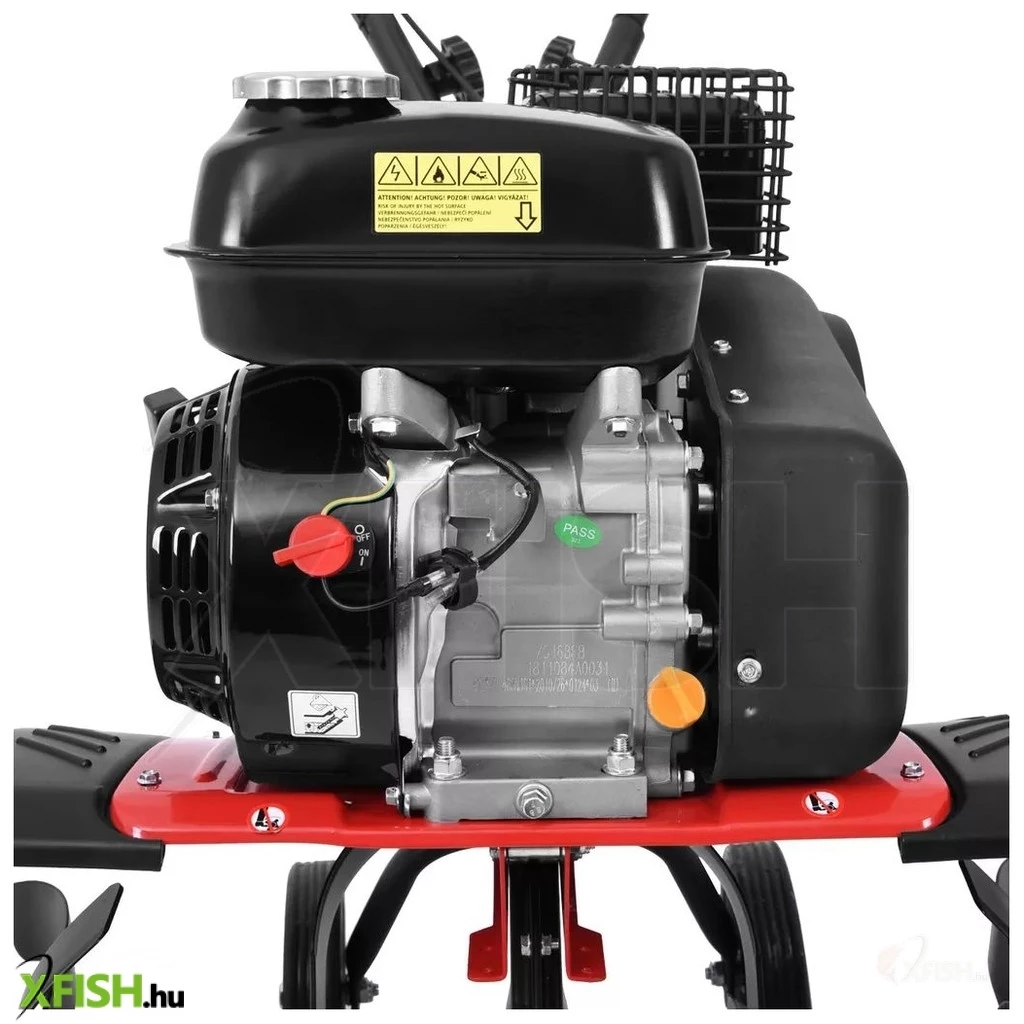 A hátsó csoroszlya lehetővé teszi a munkamélység egyszerű szabályozását, elérve akár a 38 cm-es mélységet is, ami ideális a legtöbb növény számára. A kapálógép emellett robusztus szerkezetével és nagy üzemanyagtartályával biztosítja a hosszú élettartamot és a hatékony, folyamatos munkavégzést.