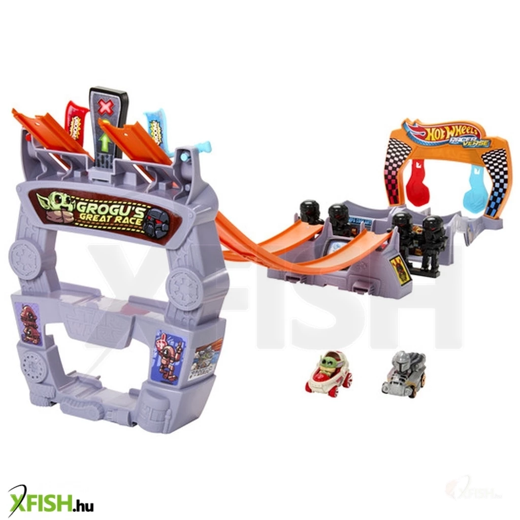Gyorsítsa át a Hot Wheels RacerVerse-t Grogu Great Race pályakészletével! Két Hot Wheels RacerVerse járművet tartalmaz, amelyeket a Star Wars ihlettek – Grogu és The Mandolorian – fröccsöntött autókban. Engedd el a versenyzőket a pálya tetejéről a fénykard indulókkal, majd nézd meg, ki ugrik át elsőként a Dark Troopers öblén és a célvonalon! A készlet összecsomagolható az egyszerű tárolás érdekében, és a lánctalpak kompatibilisek más Hot Wheels készletekkel. A további készletek külön vásárolhatók meg. A színek és a díszítések eltérőek lehetnek.