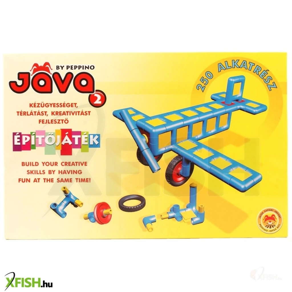 Építs különböző járműveket, épületeket Java építőelemekből! A Jáva 2 építőjáték egy műanyag csövekből, illesztékekből és kiegészítő elemekből álló építőkészlet, amivel szinte bármit meg tudsz alkotni. Az építőelemeket könnyen össze tudod rakni, és miközben építkezel, fejlődik a kézügyességed, és a mérnöki érzéked, térlátásod is. A Java építőjátékok kompatibilisek egymással, a különböző készleteket egymással is tudod használni. A Jáva 2 építőjáték tartalma: 250 darab műanyag építőelem. A játék 3 éves kor felett ajánlott. Csomagolás méretei: 32 x 6 x 21 cm.