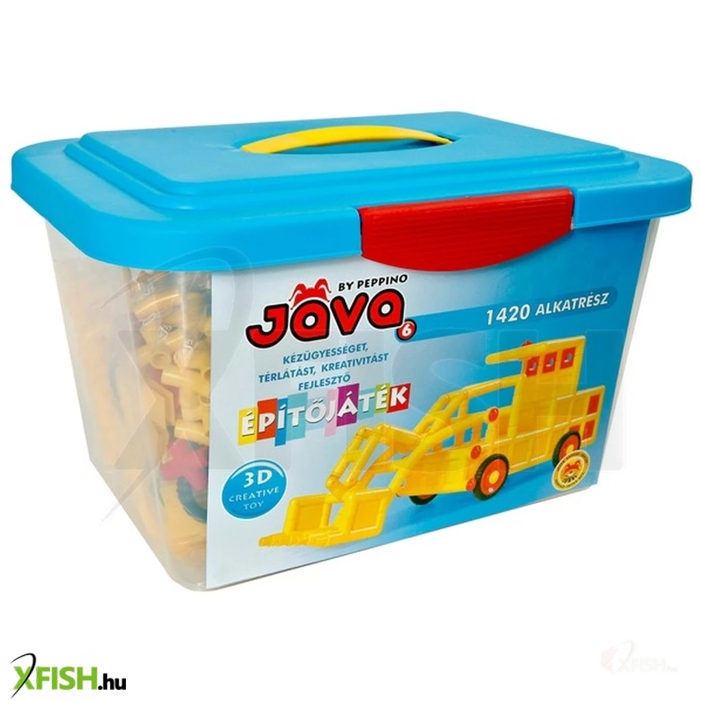 Építs meg bármilyen járművet az 1420 darab építőelemből! A Jáva 6 építőjáték egy sokoldalú, 3 dimenziós kreatív konstrukciós többfunkciós készlet, mely többfajta építőelemet és kiegészítőt tartalmaz. Ezzel a márkanévvel ellátott dobozokban található elemek egymással összeépíthetők, az elemekből készíthetsz darut, markolót, buldózert, az ötletfüzetben bemutatott tárgyakat, valamint bármely más általad kitalált tárgyat,szerkezeteket. A Java műanyag építőjáték fejleszti a kézügyességet, a térlátást és a kreativitást. A Jáva 6 építőjáték tartalma: 1420 darab építőelem, útmutató ötletekkel. Ajánlott: 3 éves kortól. A csomagolás mérete 35 x 22 x 26 cm.