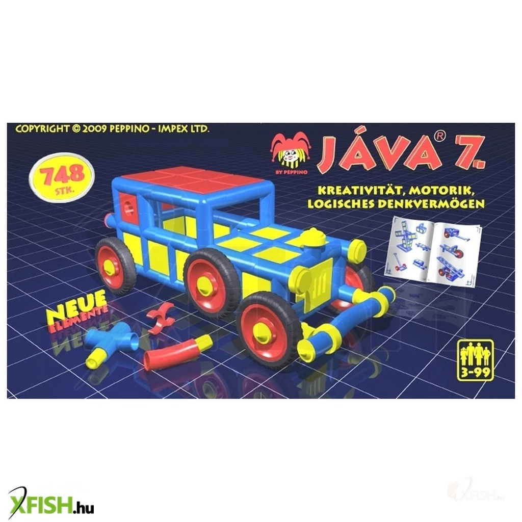 Állíts össze járműveket a Java 7 műanyag építőjátékból! A Jáva 7 építőjáték színes építőelemeket, kerekeket és kiegészítőket, illesztékeket tartalmaz, amikből többféle járgányt is meg tudsz alkotni. A cső formájú építőelemek műanyagból készültek, könnyen egymásba lehet őket illeszteni, és szinte bármit megépíthetsz, amit elképzelsz! A játék fejleszti a kézügyességet, a térlátást és a mérnöki, műszaki érzéket is. A Jáva 7 építőjáték együtt használható más Java építőkészletekkel is. Tartalom: 748 darab építőelem, útmutató ötletekkel. A játék 3 éves kor felett ajánlott. Csomagolás méretei: 31 x 21 x 16 cm.