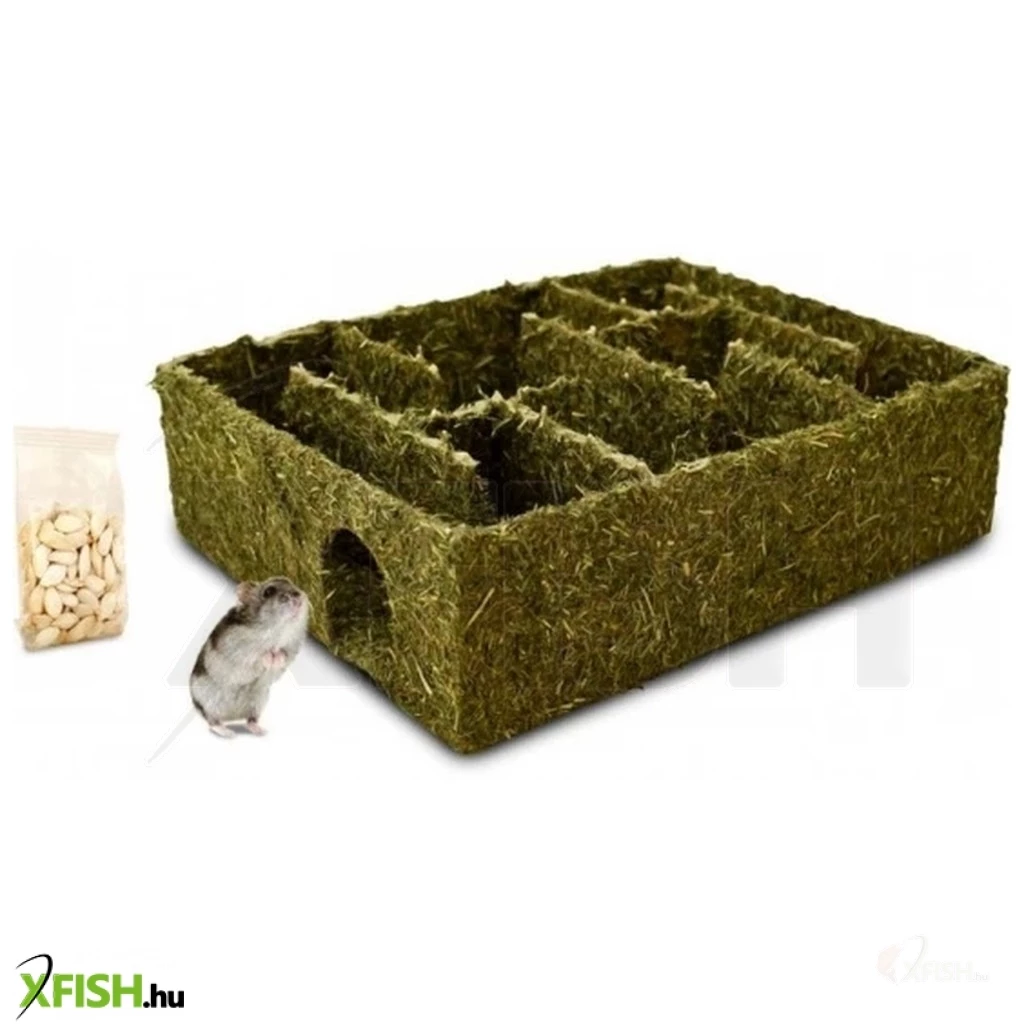 A Jr farm Snack-Labirintussal otthon is lefoglalhatod állatodat az önálló élelemszerzéssel, ugyanakkor edzheted érzékszerveiket is. Ez a tevékenység nemcsak hozzájárul állatod egyensúlyához és a stressz csökkentéséhez, de te is élvezheted, ahogy állatodat nézed. Rejtsd el a mellékelt tökmagot a labirintus folyosóiban, és állatod örömmel kezdi el keresni a csemegét a labirintusban. Természetesen bármelyik kedvenc snackjét használhatod alternatívának a tökmag helyett. A Snack-Labirintus természetes rostfalakból készül, amelyeket széna borít, és ezek teljesen ehetők. Ezért állatod felügyelet nélkül játszhat a Snack-Labirintussal. Kiegészítő takarmány kisállatok, mint például a hörcsögök vagy egerek számára.