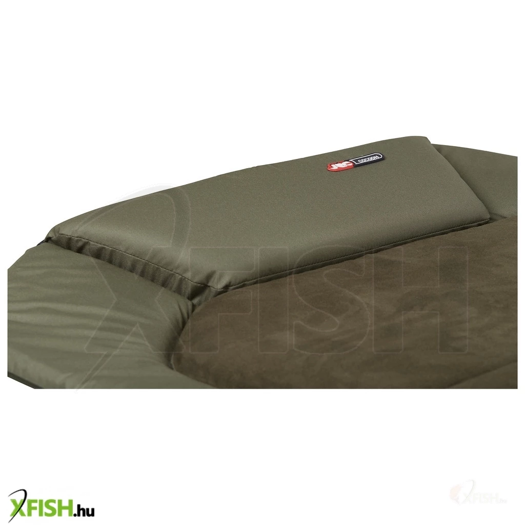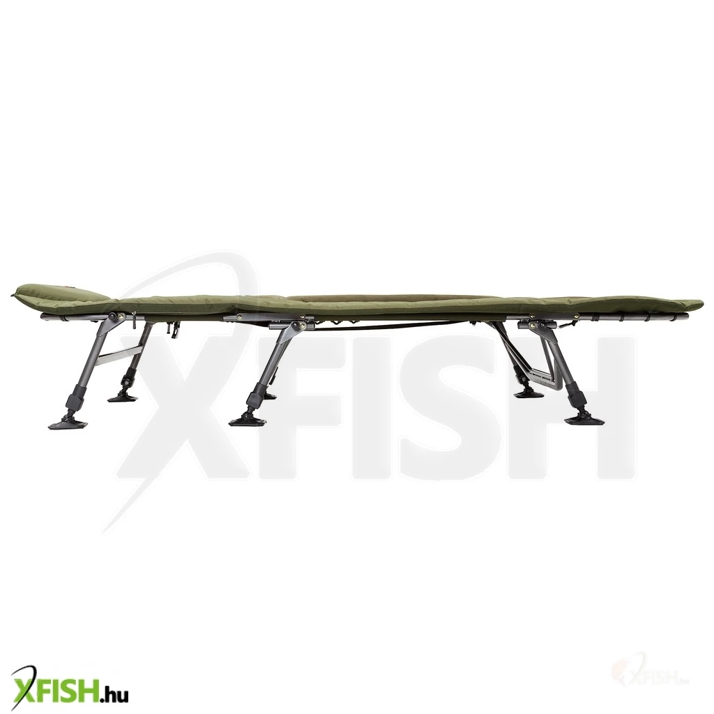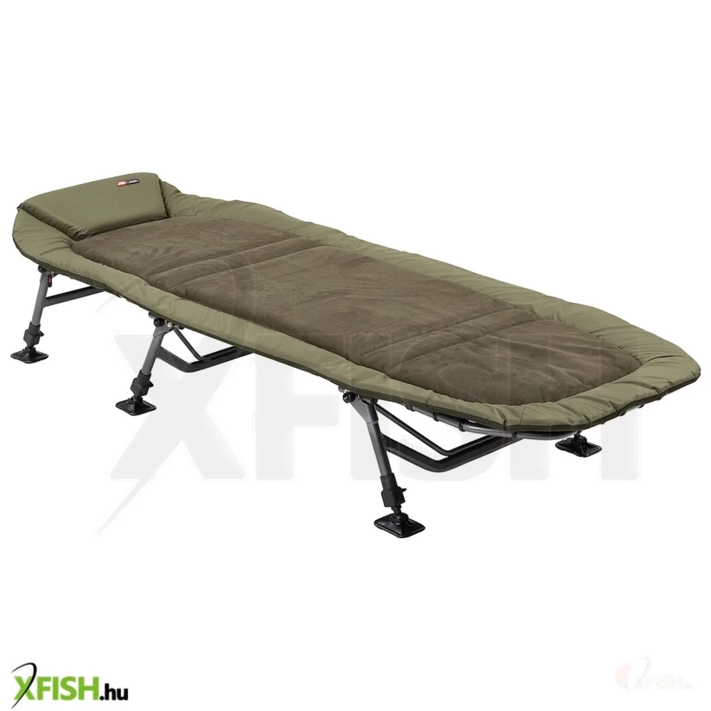 A puha párnázott fejrész luxusszintű kényelmet nyújt, míg az extra vastag, velúr bevonatú matrac kellemes alvási élményt biztosít az éjszakai horgászat során. Az egyedi tervezésű, forgatható sártalpak stabilan tartják a horgászágyat akár egyenetlen talajon is. További praktikus jellemzője, hogy az oldalsó elhelyezett zseb biztonságos tárolást nyújt telefonjának vagy az elektromos kapásjelző vevőjének, így mindig minden kéznél lehet.