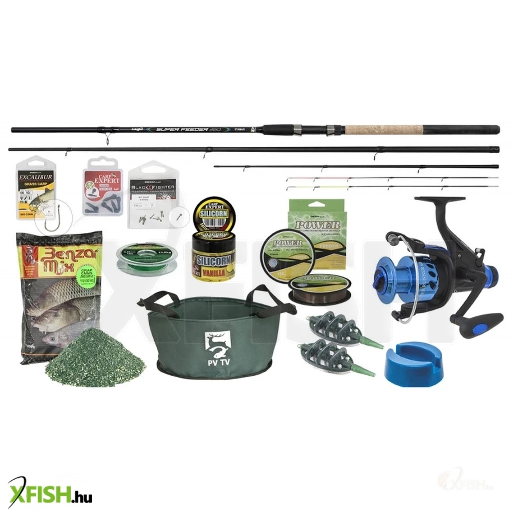 A termék tartalmaz egy 10 méteres Kamasaki fonott előkezsinórt, amely tartóssága miatt a legnépszerűbb horgászok körében. Az Excalibur horog szintén kiváló minőségű, és a szett részét képezi a fogás fokozása érdekében. Az innovatív Silicorn gumikukorica aromásított variánsa különleges vonzerőt biztosít, míg a csalitüske használata további lehetőségeket kínál a csalizás során. A vászon etetőanyag keverő edény és a Benzár Mix etetőanyag a szett része, hogy az etetés minden igénynek megfeleljen.