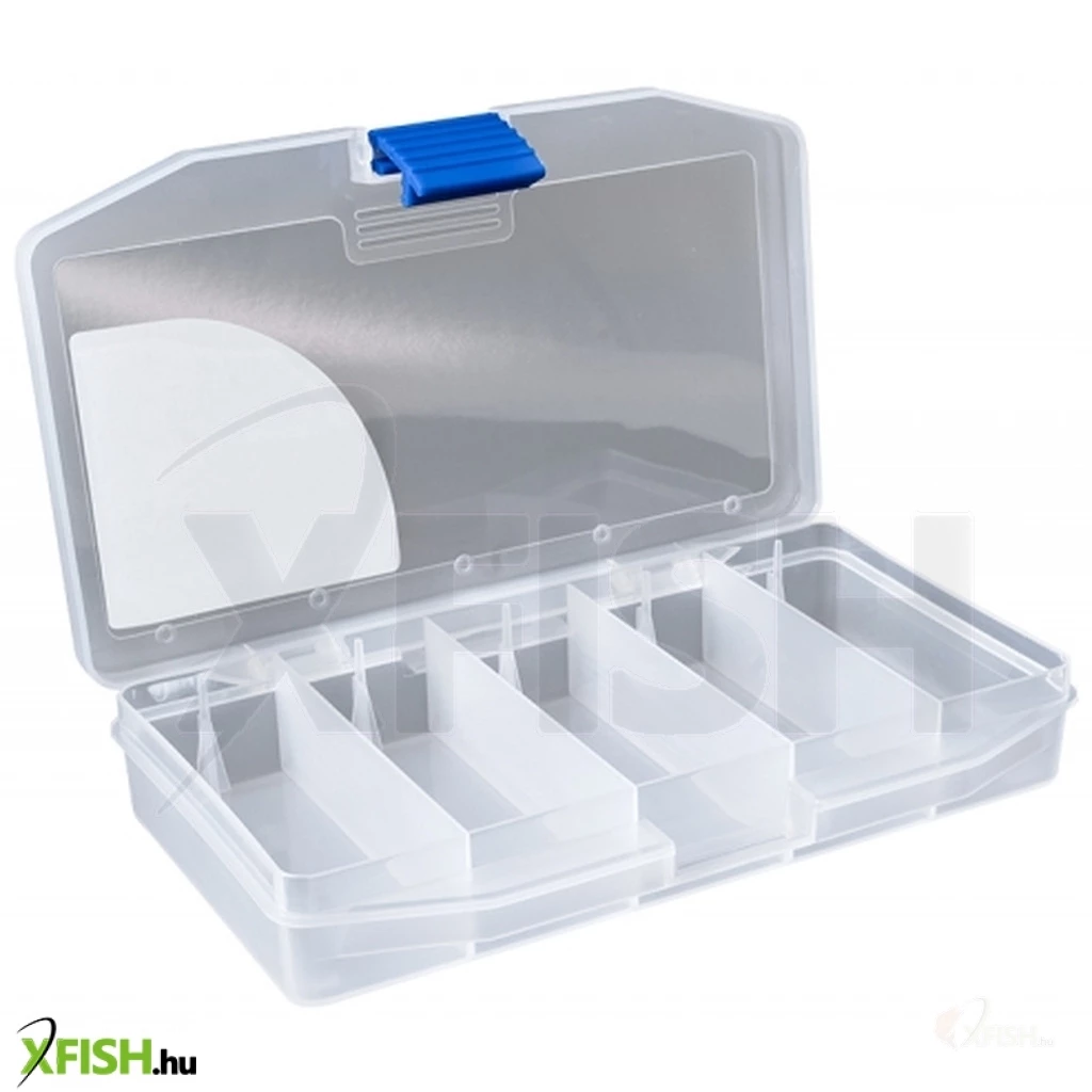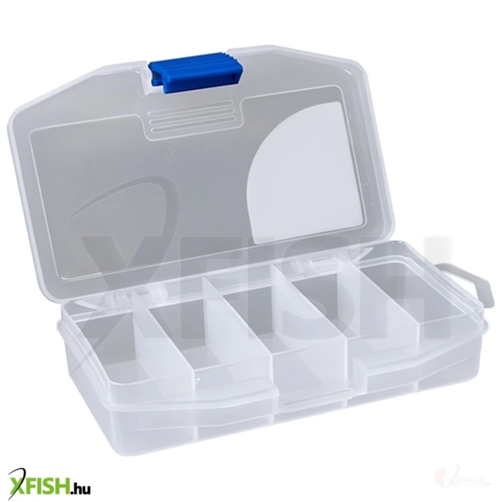 Egy igazi műcsalis doboz. Osztásai keresztben helyezkednek el, szám szerint 5 db, így az egyes rekeszek szélessége kb. 3 cm. Wobblerek tárolására a legjobb, de tarthatunk benne gumihalat a hozzá való jigfejekkel. Átlátszó, így könnyen láthatjuk mi van benne, nem kell külön kinyitni. Napsugárzásnak ellenálló műanyagból készült, így nem érik el napon, törésre nem hajlamos. Említést érdemel, nagyméretű rögzítő csatja, mely biztosítja, hogy akkor nyíljon ki, amikor mi szeretnénk.Méretei: 17x8,5x3 cm
