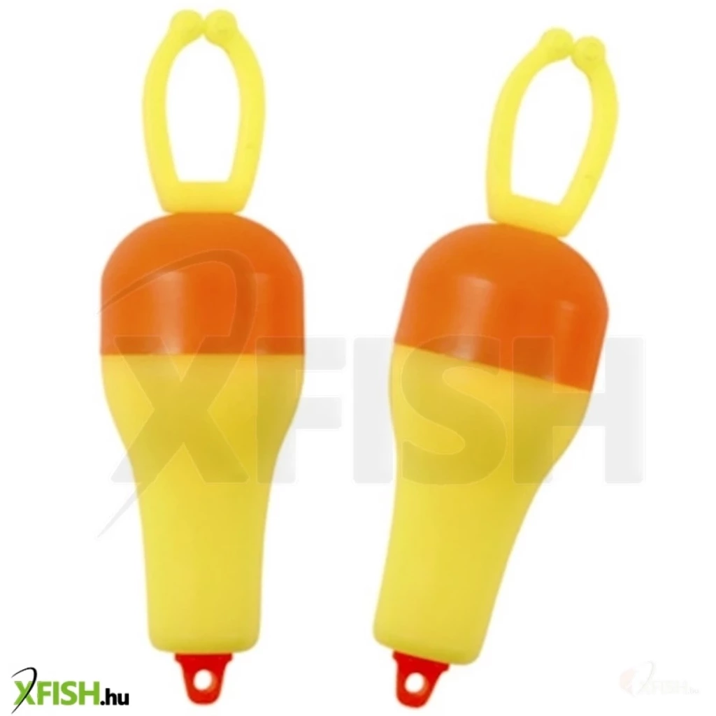 Középen szétszedhető, csíptetős kapásjelző. Tetszés szerint súlyozható vagy a test belsejébe világító patron helyezhető. Anyaga Uv és vegyszerálló.
