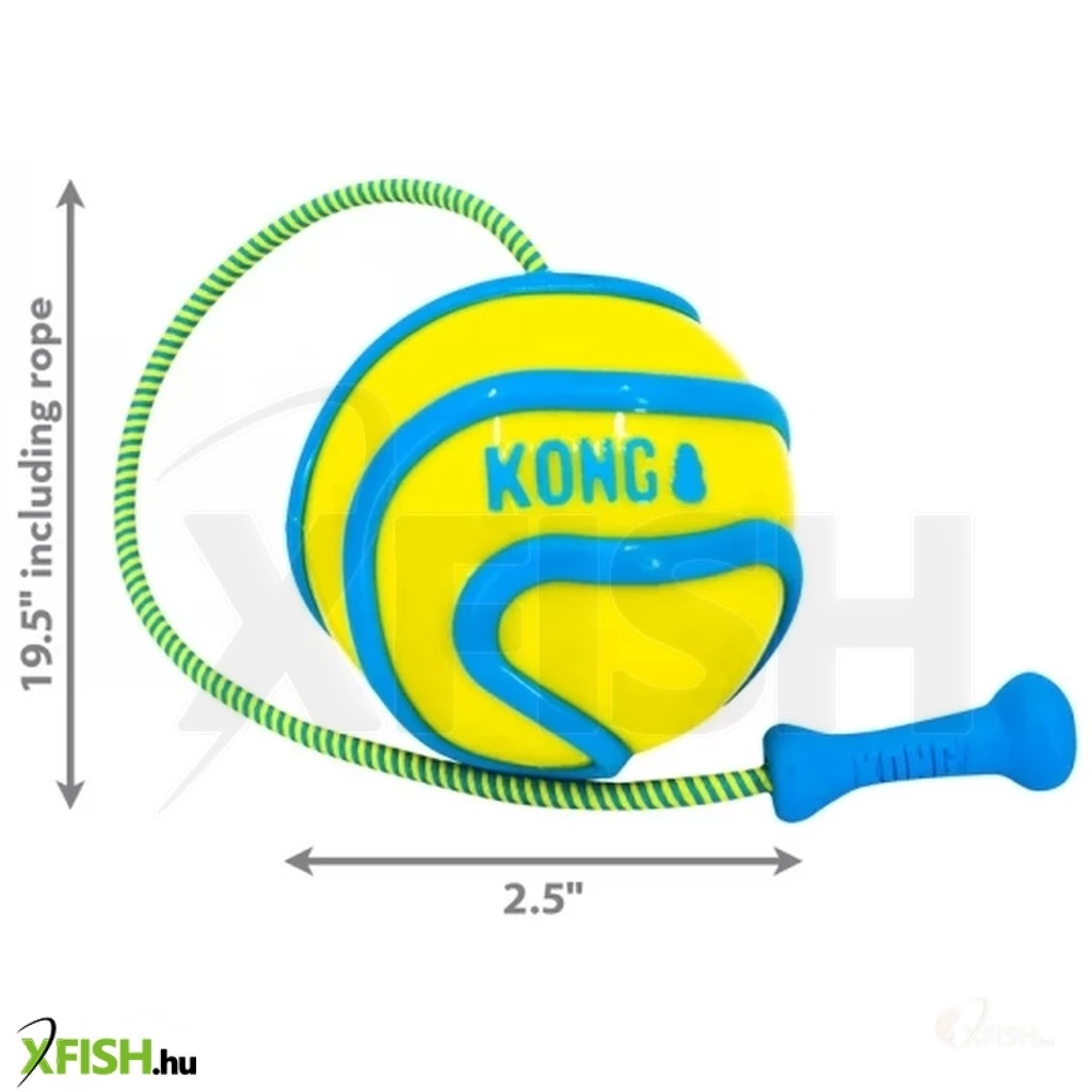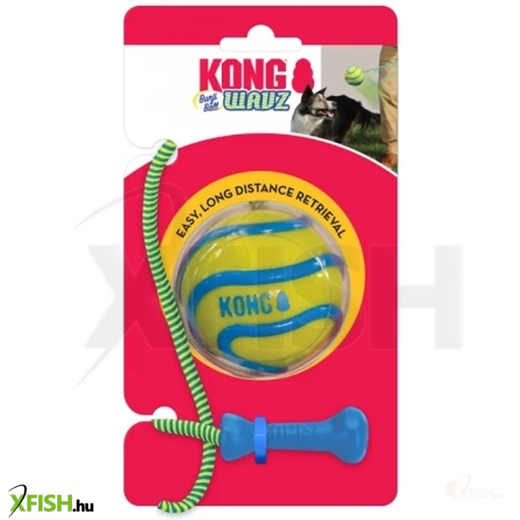 Maga a labda strapabíró TPR gumiból készült, az ergonomikus nyéllel ellátott rugalmas kötél pedig lehetővé teszi a labda még messzebb történő dobását. A Kong Wavz Bunji Ball a vízen lebeg, ezért kötelező játék a strandon.