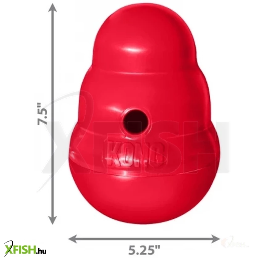 Igazi óriás a jutalomfalattal tölthető játékok között! Kemény műanyagból készült interaktív keljfeljancsi elven működő jutalomfalat-adagoló játék. Az alja lecsavarható így egyszerűen tölthető. A Kong játék egyedülálló természetes gumi összetevői utánozhatatlanok ellenállóságukat tartósságukat és pattogási képességüket tekintve. Rágcsálás barát nem mérgező nem dörzsölő és nem válik élessé vagy szálkássá a rágástól. A felmérések azt mutatják hogy az állatorvosok és kutya idomárok a Kong játékokat ajánlják a legtöbbször világszerte.