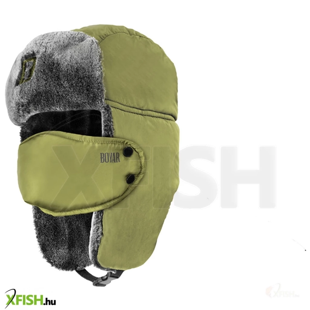 Ez a Kucsma a legnagyobb fagyokhoz lett tervezett. A BOYAR számos olyan részletet rejt, amelyek segítenek fenntartani a termikus kényelmet a hideg téli napokban. Khaki színben tervezték, fekete kiegészítőkkel, ami ideális, akár horgászik, akár vadászik. Stílusos kialakításának köszönhetően azonban alkalmi viseletre is tökéletes. A belső bélés tapintásra nagyon puha és meleg, fésült fekete poliészter anyagból áll. A "füleken" és a homlok felett ez az anyag szürke árnyalatot nyer, amely hatékonyan kiegészíti a kucsma teljes kialakítását. Az alsó részen van egy kapocs, amely lehetővé teszi az áll alatti rögzítést, ami szinte teljesen kiküszöböli a hőveszteséget. Vitathatatlan előny a száj és az orr levehető fedele is, amelynek köszönhetően súlyos fagyok esetén nem kell jeges levegőt lélegezni.