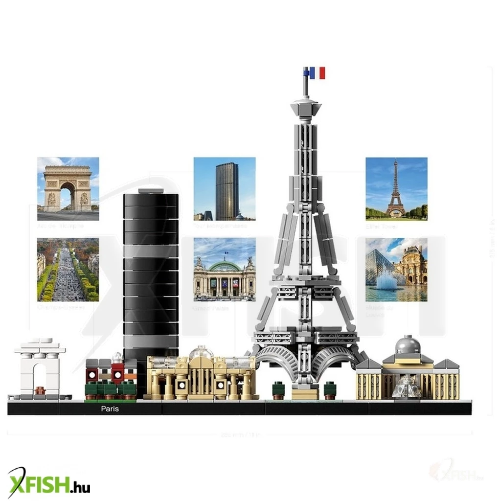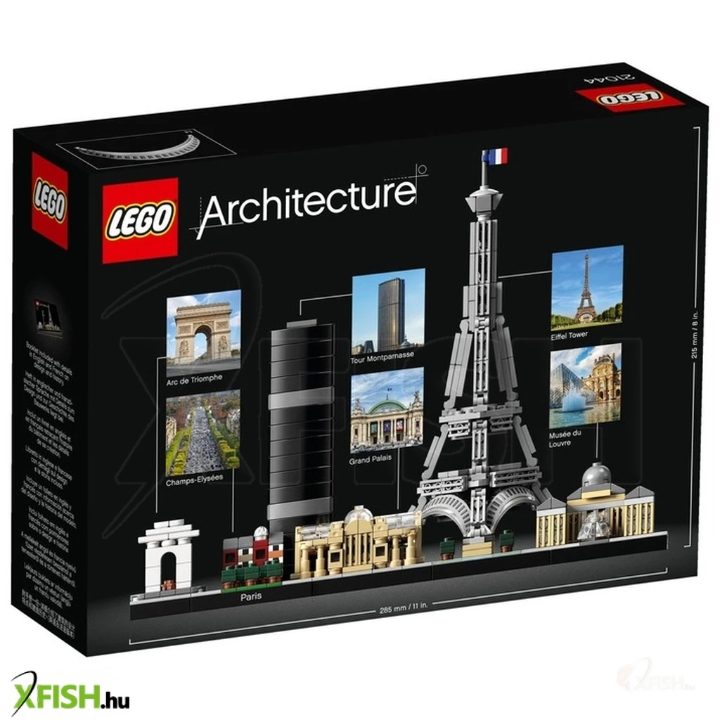 Franciaország fővárosának nevezetességei, Lego(R) építőelemekből! A Lego(R) Architecture Párizs 21044 készletből a Diadalív, az Eiffel-torony, a Louvre és a Grand Palais épületét is meg tudod alkotni, egymás mellé rendezve. Az épületek impozánsak, a legapróbb részleteket is felfedezheted az építményeken. Az elkészült épületeket egy alapzatra tudod helyezni, amit még egy Paris feliratú táblával tehetsz még exkluzívabbá. A Lego(R) Architecture Párizs 21044 a Lego(R) felnőtt szerelmeseinek készült, az elkészült mű akár díszként is megállja a helyét az íróasztalon. Összerakott méretek: 28 x 11 x 22 cm. A Lego(R) Architecture Párizs 21044 készlet 649 darab Lego(R) építőelemet tartalmaz.