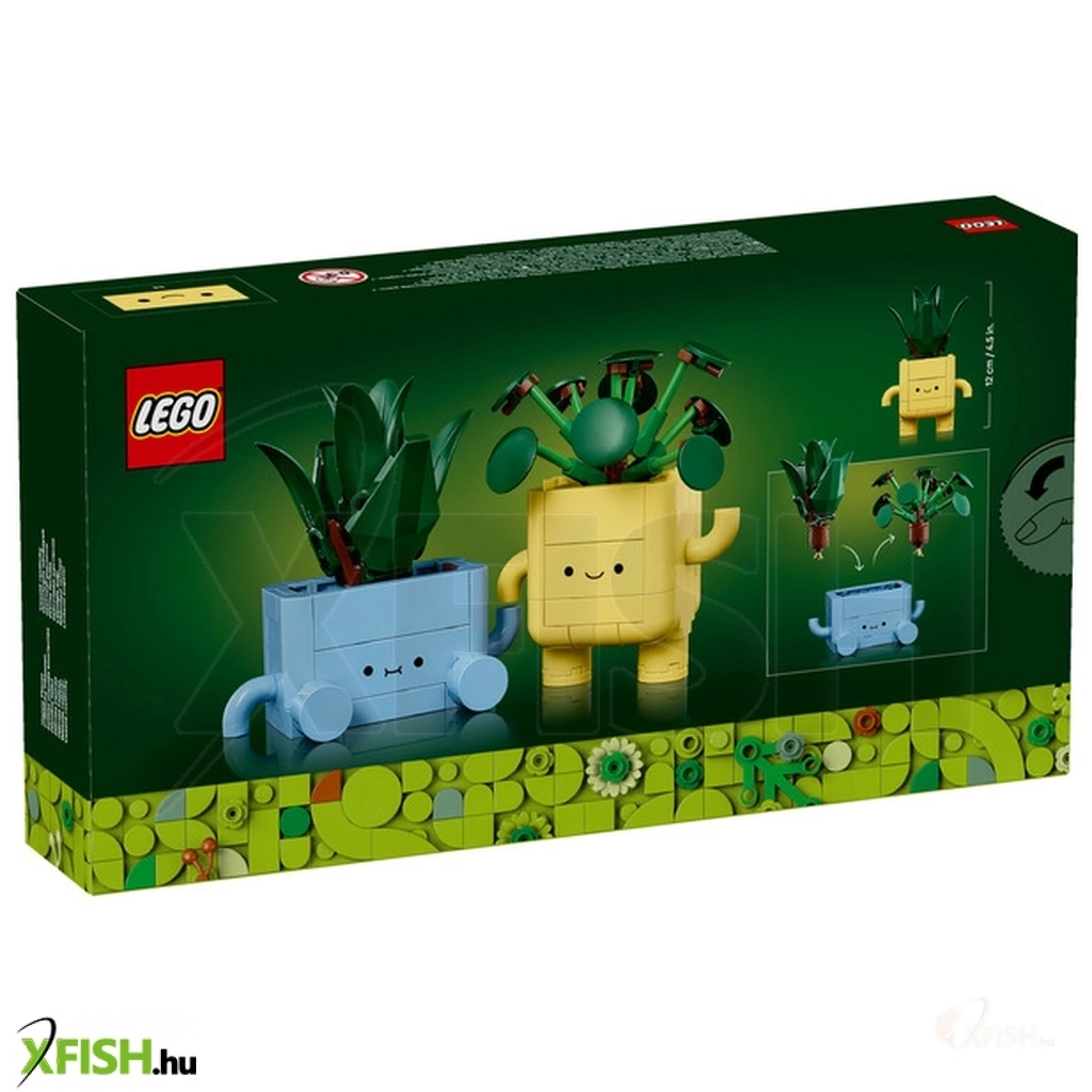 Ültesd el a vidámság magvait a 9 éves vagy nagyobb gyerekeknek készült Lego(R) Botanicals Mosolygós növények (10349) építőszettel! Az aranyos kis részletekben gazdag készlettel a lányok és fiúk igazán kreatívan építhetnek meg 2 vidám Lego növényt. Ez az imádnivaló szett tartalmaz egy kis, álló dracénanövényt és egy kis pileanövényt, amely ülő helyzetben van. A készlethez tartozik még egy sárga és egy kék virágcserép is, amelyeket figurák vidám arcai díszítenek, és amelyek felcserélhetők, hogy a gyerekek eldönthessék, melyik növényt melyik cserépbe szeretnék belehelyezni. Ha a leendő kis kertészek összerakták a növényeket, akkor kiállíthatják őket együtt vagy külön-külön a szobájukban vagy a polcon, hiszen mindenhol mosolyt csalnak az emberek arcára. Egy szuper, kreatív projekt a gyerekeknek, amit önállóan és a barátaikkal együtt is megépíthetnek. Ez a növényépítő készlet ötletes ajándék lesz fiúknak, lányoknak és növényrajongóknak, akik örömmel alkotják majd meg ezt az örökzöld növénydekorációt. A készlet 217 darabból áll.