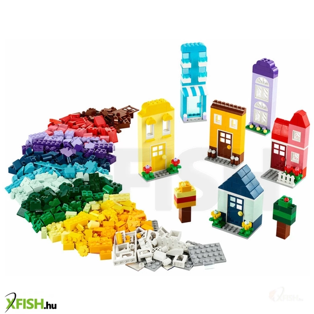 Játék ház építőkészlet. 6 otthonos, különböző színű, stílusú és formájú Lego(R) Classic Kreatív házak modell, amelyeket megalkothatnak és testre szabhatnak a 4 éves vagy nagyobb gyerekek.