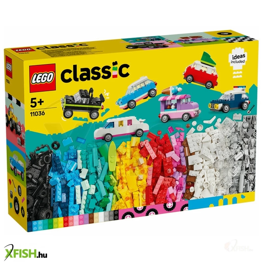 Lepd meg a járgányok 5+ éves kis rajongóit a Lego(R) Classic Kreatív járművek (11036) építésre és játékra tervezett készlettel. Ez a színes autóépítő szettel többféle építőkockát és elemet tartalmaz, valamint egyszerű útmutatókkal támogatja a végtelen sokszor újraépíthető járgányok színes készletét. 900 építőkockával, különleges elemekkel, 52 kerékkel és könnyen követhető építési útmutatókkal a gyerekek egy rendőrautót, egy fagyis autót, egy quadot, egy homlokrakodót és egy játék limuzint építhetnek. Majd különböző stílusok, vagány ötletek és színes dekorációk alapján a gyerekek néhány új módon újraépíthetik a járműveket. Miközben fejlődnek a kreatív építési készségeik, a gyerekek kipróbálhatják saját tervezéseiket is. A csomagban 10 fantáziadús ötlet inspirálja és indítja be az önálló építési mókát. Az útmutatók megtalálhatók a Lego Builder appban is, ahol a gyerekek ráközelíthetnek a modellekre, elforgathatják azokat, és követhetik a haladásukat. A Lego Classic játékok telis-tele vannak ötletekkel és inspirációval, emellett abban is segítenek, hogy a szülők és gyerekek osztozzanak az építési mókában és a fejlődési mérföldkövekben.