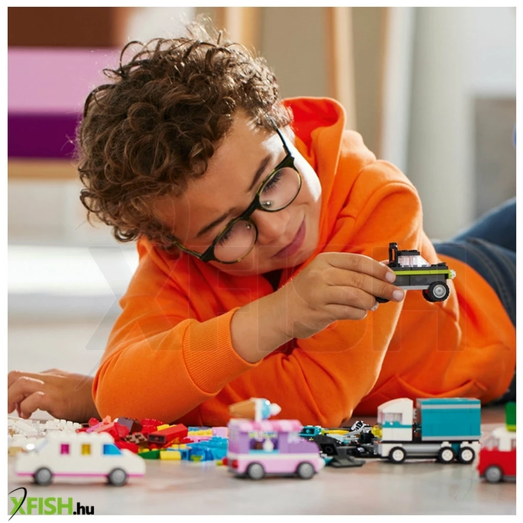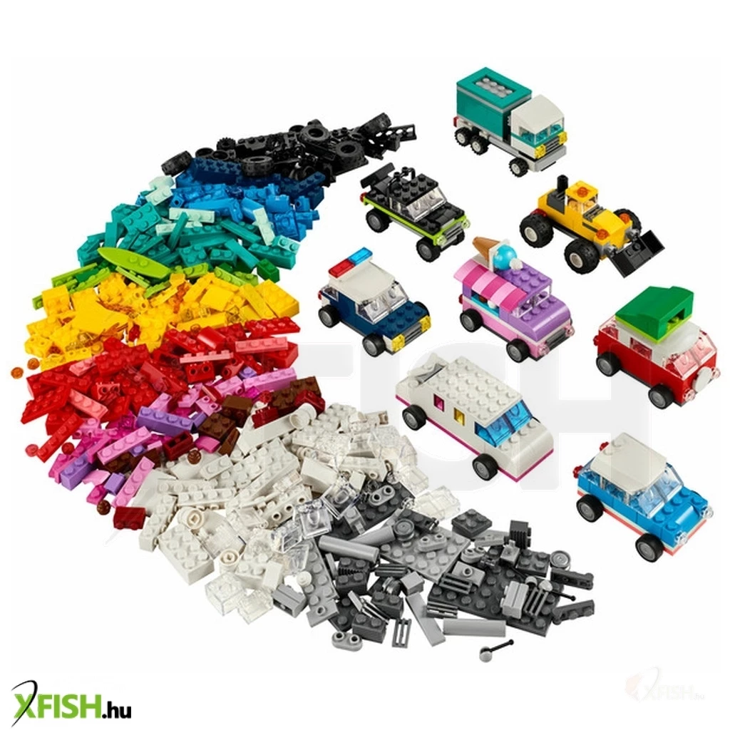 A Lego(R) Classic Kreatív járművek építőjáték tartalmaz egy rendőrautót, egy fagyis kocsit, egy quadot, egy homlokrakodót, egy limuzint, egy terepjárót és egy kombiautót.