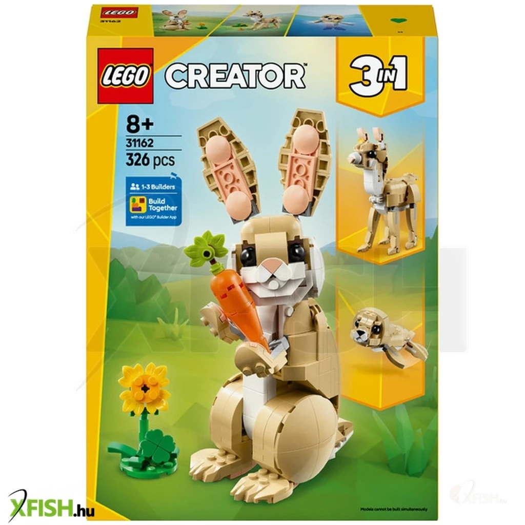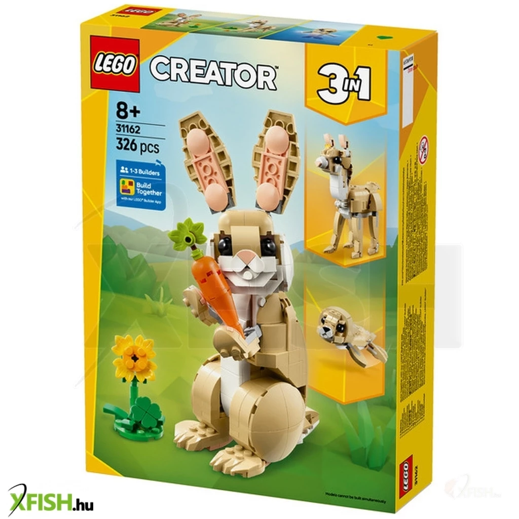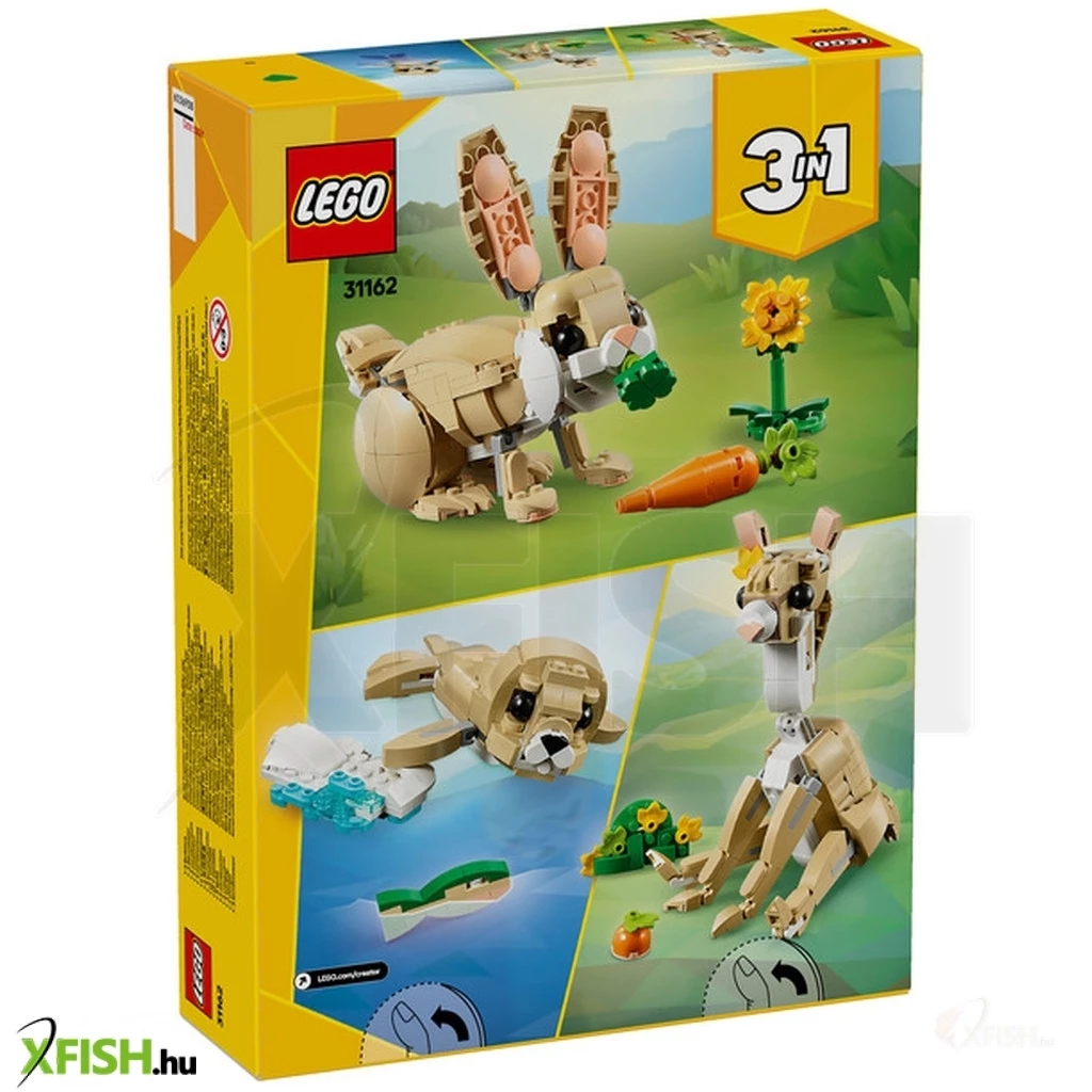 Engedd, hogy a 8 éves vagy nagyobb, állatbarát gyerekek vidám kalandokra indulhassanak a Lego(R) Creator 3 az 1-ben Aranyos nyuszi (31162) építőszettel! Az állatos játékkészletben található egy játék nyuszi, amelynek feje, füle, mellső és hátsó lábais beállítható, így 2 és 4 lábon is tud állni. A nyuszihoz napraforgó és répa is tartozik.