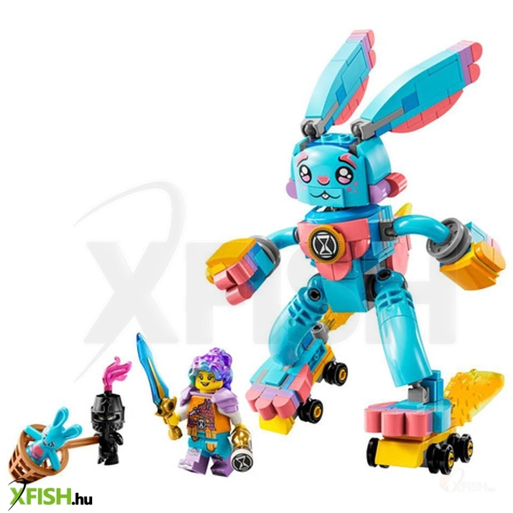 Engedd, hogy a 7+ éves gyerekek akcióba lendüljenek az Álomvilágban a Lego(R) DREAMZzz™ Izzie és Bunchu a nyuszi (71453) építőjátékszettel. A tévéműsor izgalmas történetszála alapján, a szettel a gyerekek segíthetnek a főhősnek, Izzie-nek, hogy hatalmassá változtassa kedvenc plüssfiguráját, és megmentse a plüssállatot, melyet foglyul ejtett a rémálmok egyik Lidérce. 1 készlet, 2-féle építési mód A hatalmas, élő Bunchunak mozgatható nyaka, karja és lába van. Az építés során a gyerekek fantáziájára van bízva, hogy a történetszálat követő instrukciók alapján görkorcsolyát és kesztyűt húznak rá, vagy méhecske szárnyakat és fullánkot illesztenek hozzá. Fantasztikus minifigura Izzie részletgazdag minifigurája segít életre kelteni az eseményeket. Izzie-hez olyan kiegészítők tartoznak, mint egy páncél, egy kard és egy homokóra. Lidérc és Bunchu figurája is a szett része, így a gyerekek eljátszhatják az egész történetet.