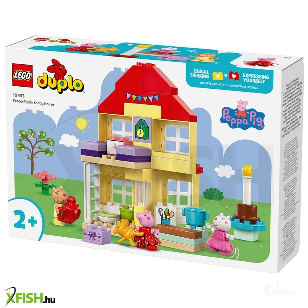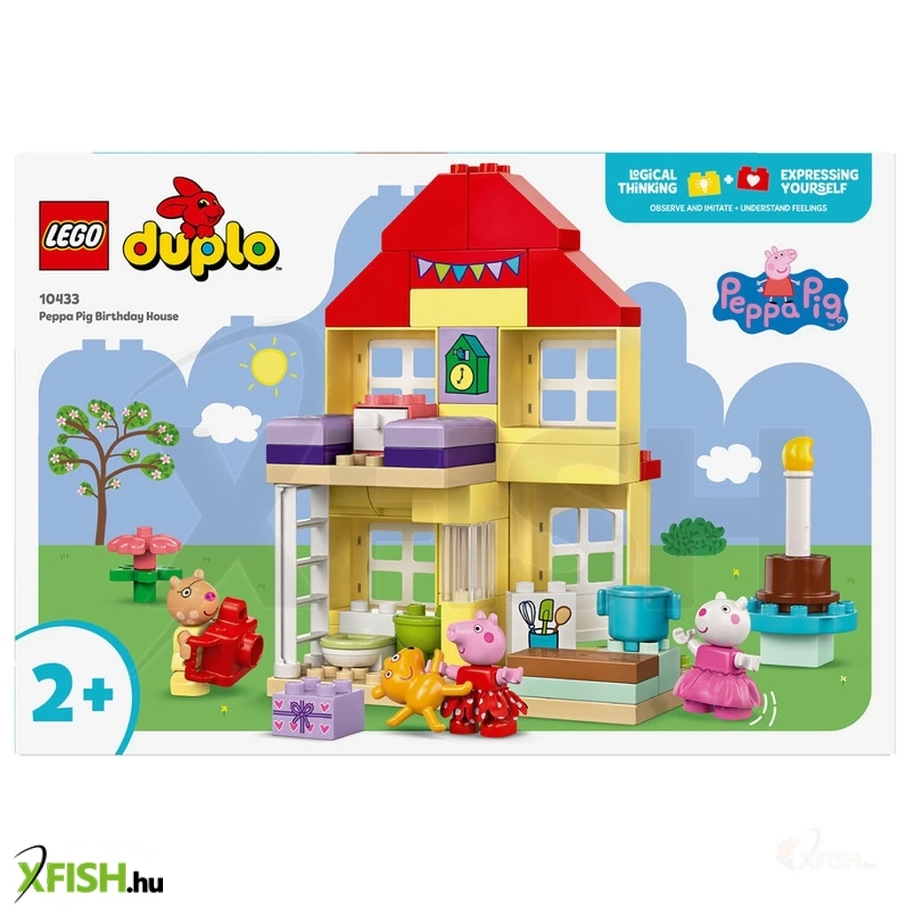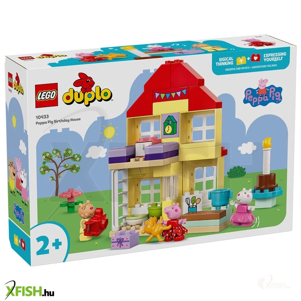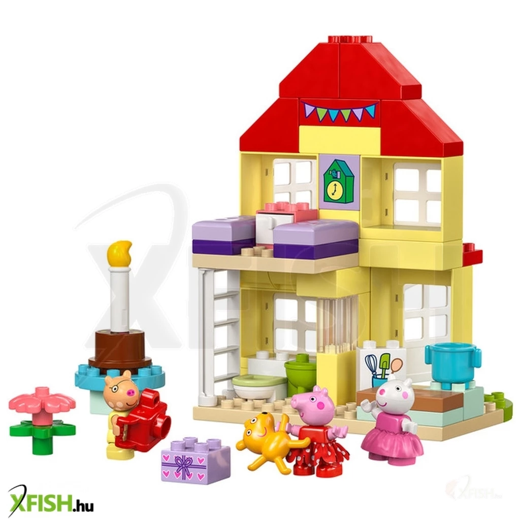 Lepd meg Peppa malac rajongóit egy meghívóval a buliba! A Peppa malac születésnapi háza (10433) játékszettel a lányok, fiúk és 2+ éves óvodáskorú gyermekek együtt ünnepelhetnek Peppával és barátaival. Ez a Peppa malac játék telis-tele van olyan sajátosságokkal, amelyeket a kisgyermekek felismernek majd a tévéműsorból. A szetthez Peppa, Pedro póni és Suzy bari figurák, valamint Peppa Teddy nevű plüssmackója tartoznak. Az ikonikus házban van egy létráról megközelíthető hálószoba és egy konyha, ahol a kicsik eljátszhatják, hogy születésnapi tortát készítenek. Található egy fürdőszoba is kézmosóval, ahol a felnőttek elmagyarázhatják, miért fontos a kézmosás, főleg a tortaevés előtt! A Lego(R) duplo(r) Peppa malac átépíthető játékokat úgy terveztük, hogy az óvodások többféle tanulási készségét támogassa. A kisgyermekek fejlesztik a logikus gondolkodásukat, miközben eljátsszák a való élet és a bulik eseményeit, például üdvözlik a barátaikat, átadják az ajándékokat, és felvágják a tortát. Az önkifejezésüket is fejlesztik, hiszen elképzelik, milyen lehet részt venni egy ilyen vidám ünnepségen.