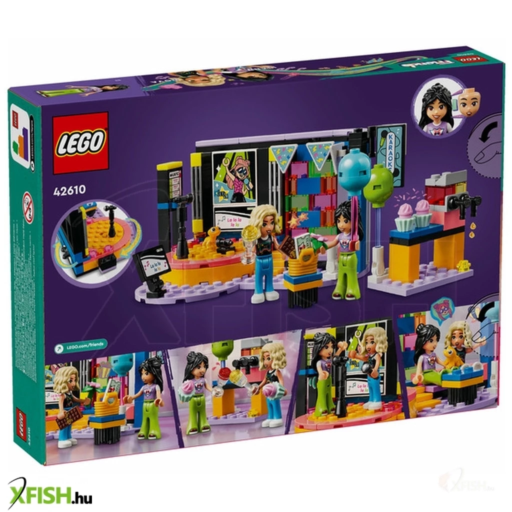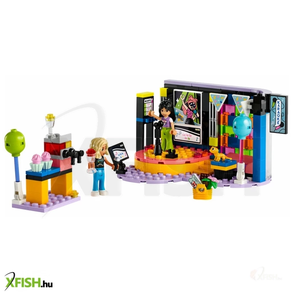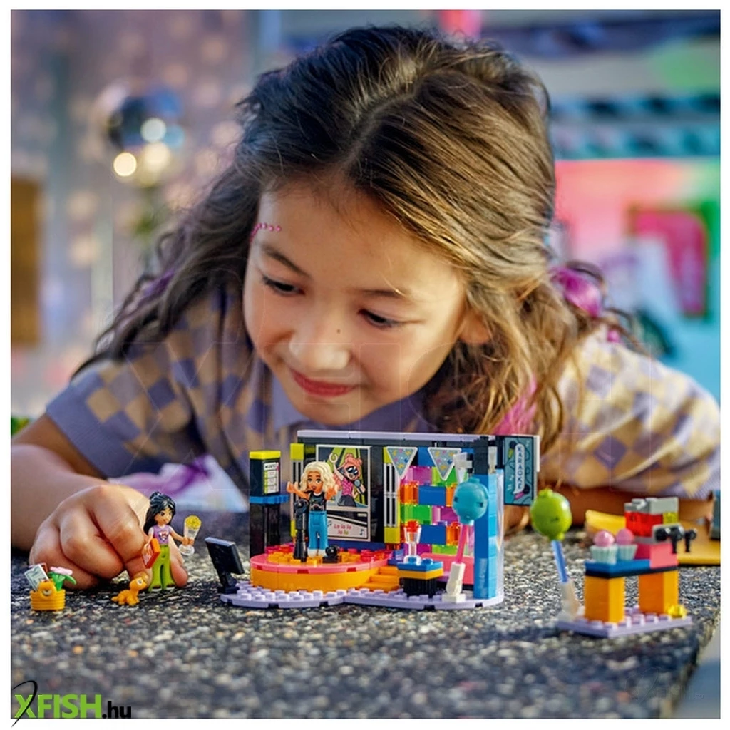 Itt egy vidám ajándék lányoknak, fiúknak és 6 éves vagy annál nagyobb gyerekeknek, akik szeretik az éneklős és vidám játékokat. A Lego(R) Friends Karaoke party (42610) szetthez egy forgó színpad, mikrofonok, egy pihenőhely és egy jégkásagép tartozik, így a gyerekek elmesélhetik a születésnapi zsúr történetét. 2 Lego Friends figurát tartalmaz cserélhető arcokkal, hogy imitálni lehessen az éneklést, valamint egy gekkófigura és sok-sok kiegészítő is a szett része. Ez a gyermekeknek készült építőkészlet életre kelti a játékot, miközben a gyerekek eljátsszák Liann születésnapi zsúrjának történetét. A zöld kerék segítségével elforgathatják a színpadot, a mikrofonokkal és a cserélhető arcokkal pedig eljátszhatják, hogy énekelnek a figurák. A történet folytatódik, a barátok jégkását és muffint fogyasztanak, amikor egy kis szünetet tartanak. Nova még izgalmas ajándékot is hozott Liann születésnapjára, amit a gyerekek szintén beleszőhetnek a fantáziadús történetbe. Fedezz meg több gyerekjátékot a Lego Friends világában, ahol a gyermekeknek rengeteg lehetőségük van a történetmesélésre és a valódi élet kalandjainak az eljátszására.