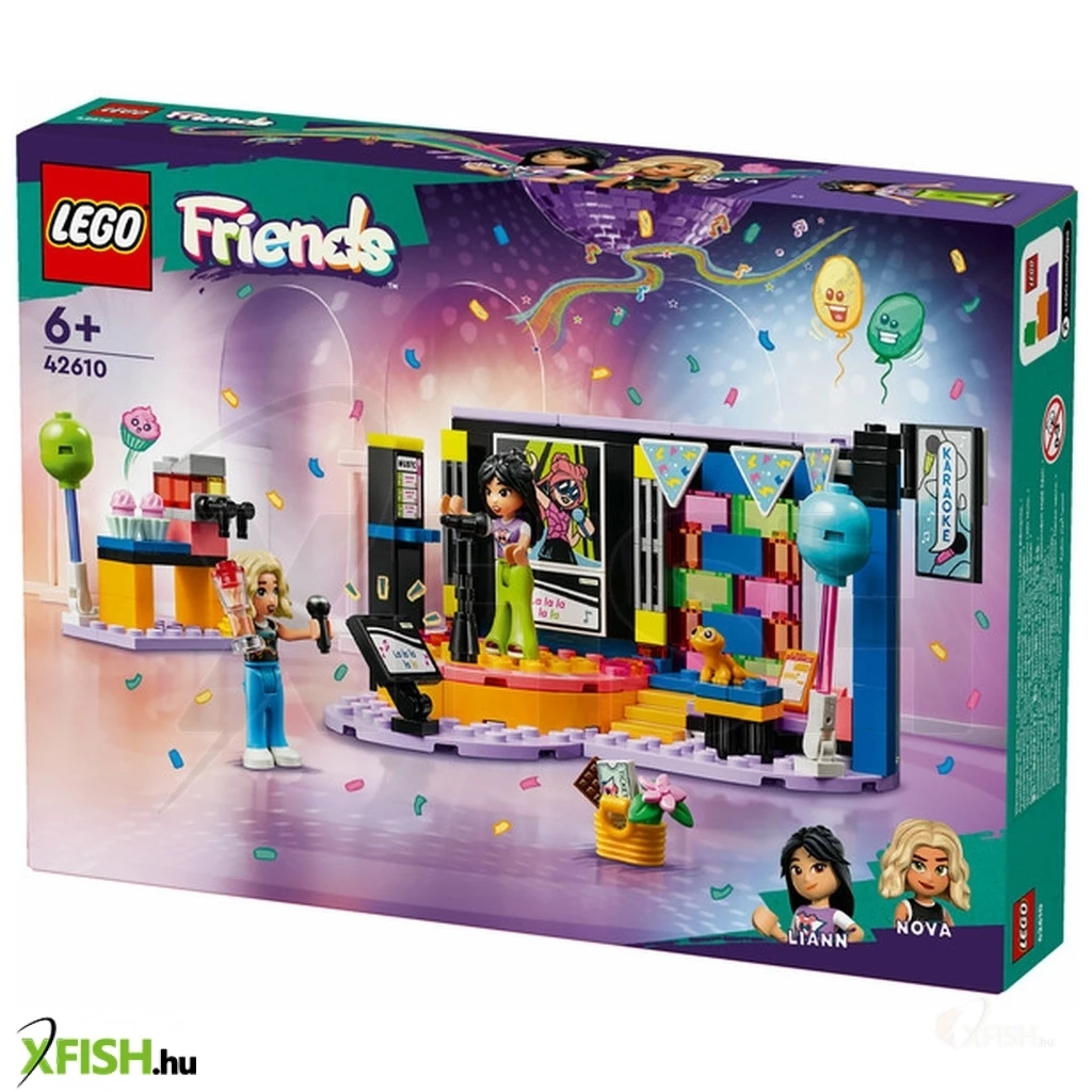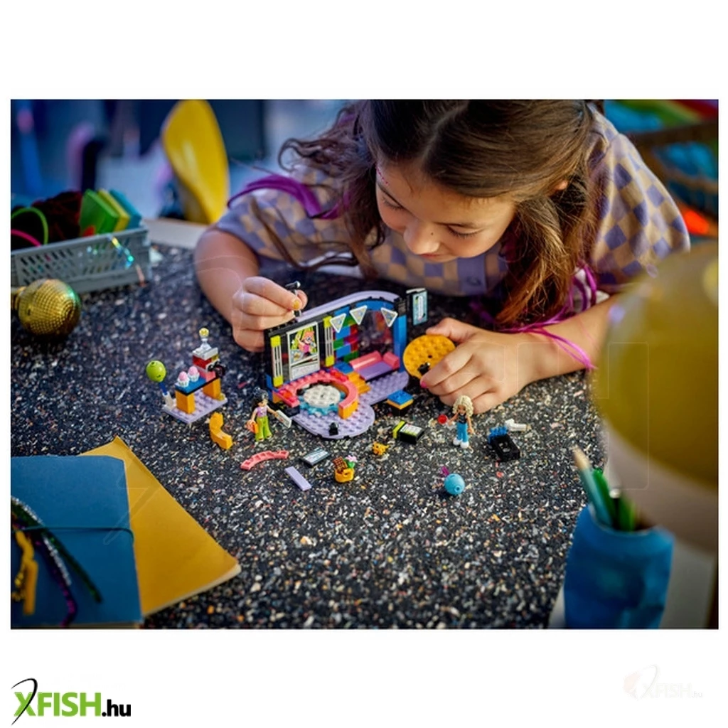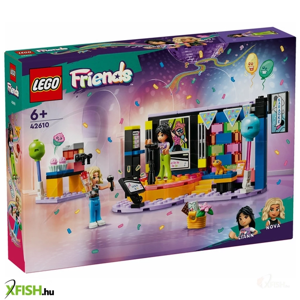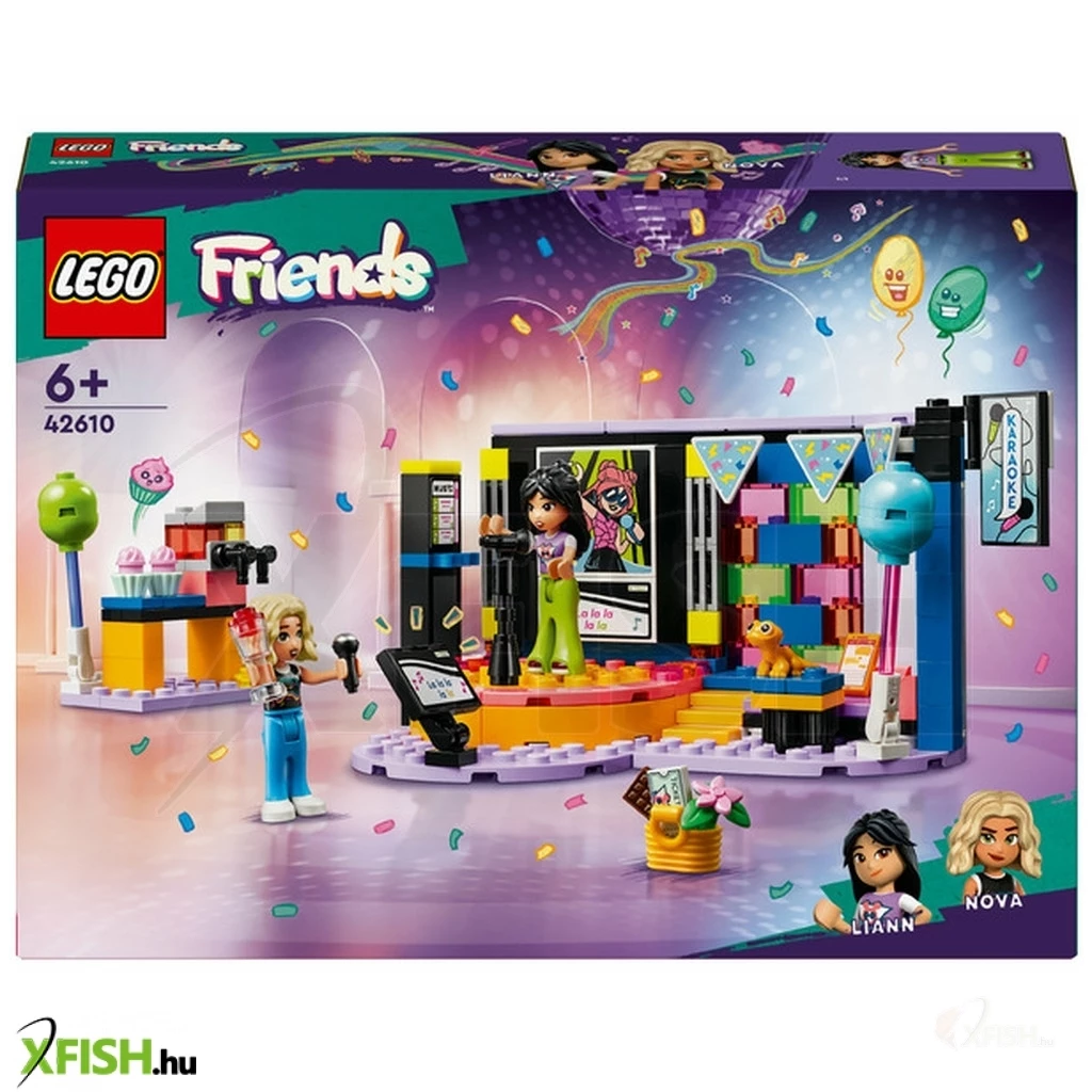 Itt egy vidám ajándék lányoknak, fiúknak és 6 éves vagy annál nagyobb gyerekeknek, akik szeretik az éneklős és vidám játékokat. A Lego(R) Friends Karaoke party (42610) szetthez egy forgó színpad, mikrofonok, egy pihenőhely és egy jégkásagép tartozik, így a gyerekek elmesélhetik a születésnapi zsúr történetét. 2 Lego Friends figurát tartalmaz cserélhető arcokkal, hogy imitálni lehessen az éneklést, valamint egy gekkófigura és sok-sok kiegészítő is a szett része. Ez a gyermekeknek készült építőkészlet életre kelti a játékot, miközben a gyerekek eljátsszák Liann születésnapi zsúrjának történetét. A zöld kerék segítségével elforgathatják a színpadot, a mikrofonokkal és a cserélhető arcokkal pedig eljátszhatják, hogy énekelnek a figurák. A történet folytatódik, a barátok jégkását és muffint fogyasztanak, amikor egy kis szünetet tartanak. Nova még izgalmas ajándékot is hozott Liann születésnapjára, amit a gyerekek szintén beleszőhetnek a fantáziadús történetbe. Fedezz meg több gyerekjátékot a Lego Friends világában, ahol a gyermekeknek rengeteg lehetőségük van a történetmesélésre és a valódi élet kalandjainak az eljátszására.