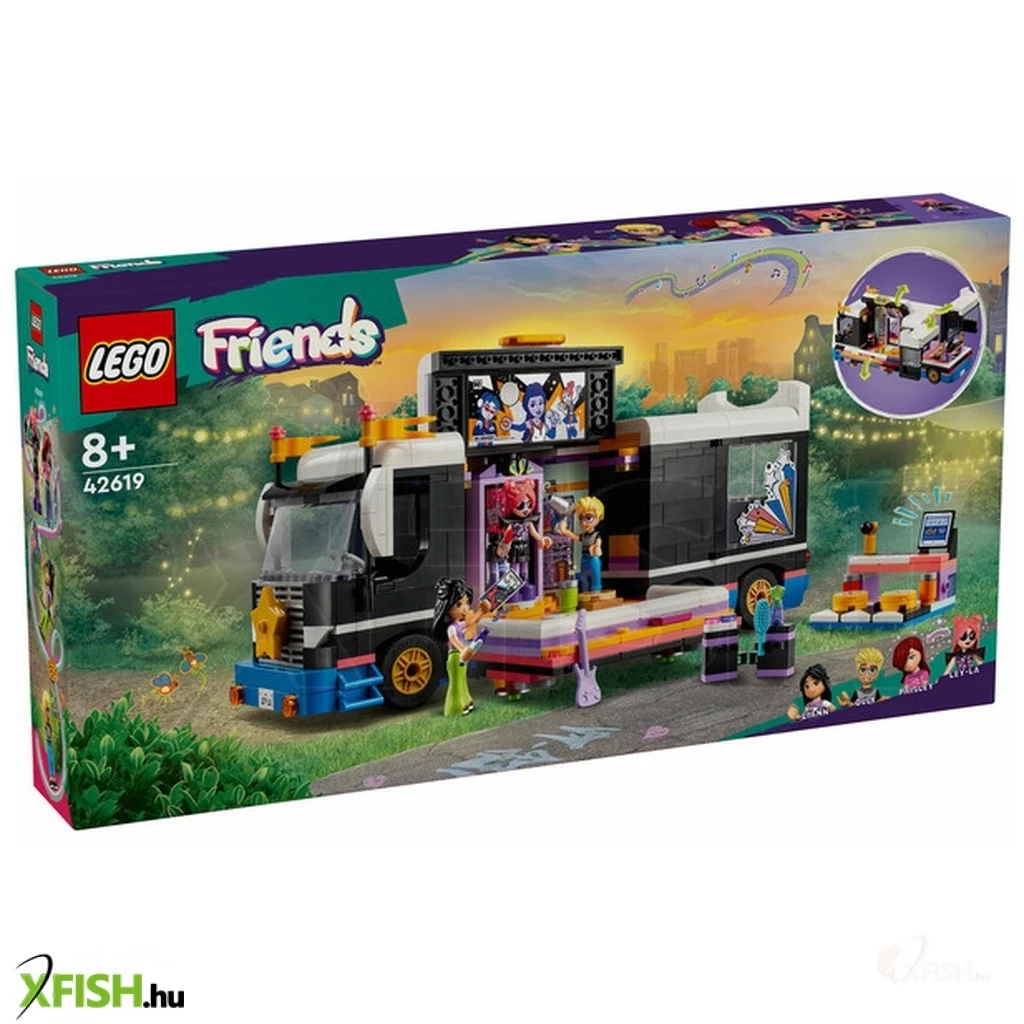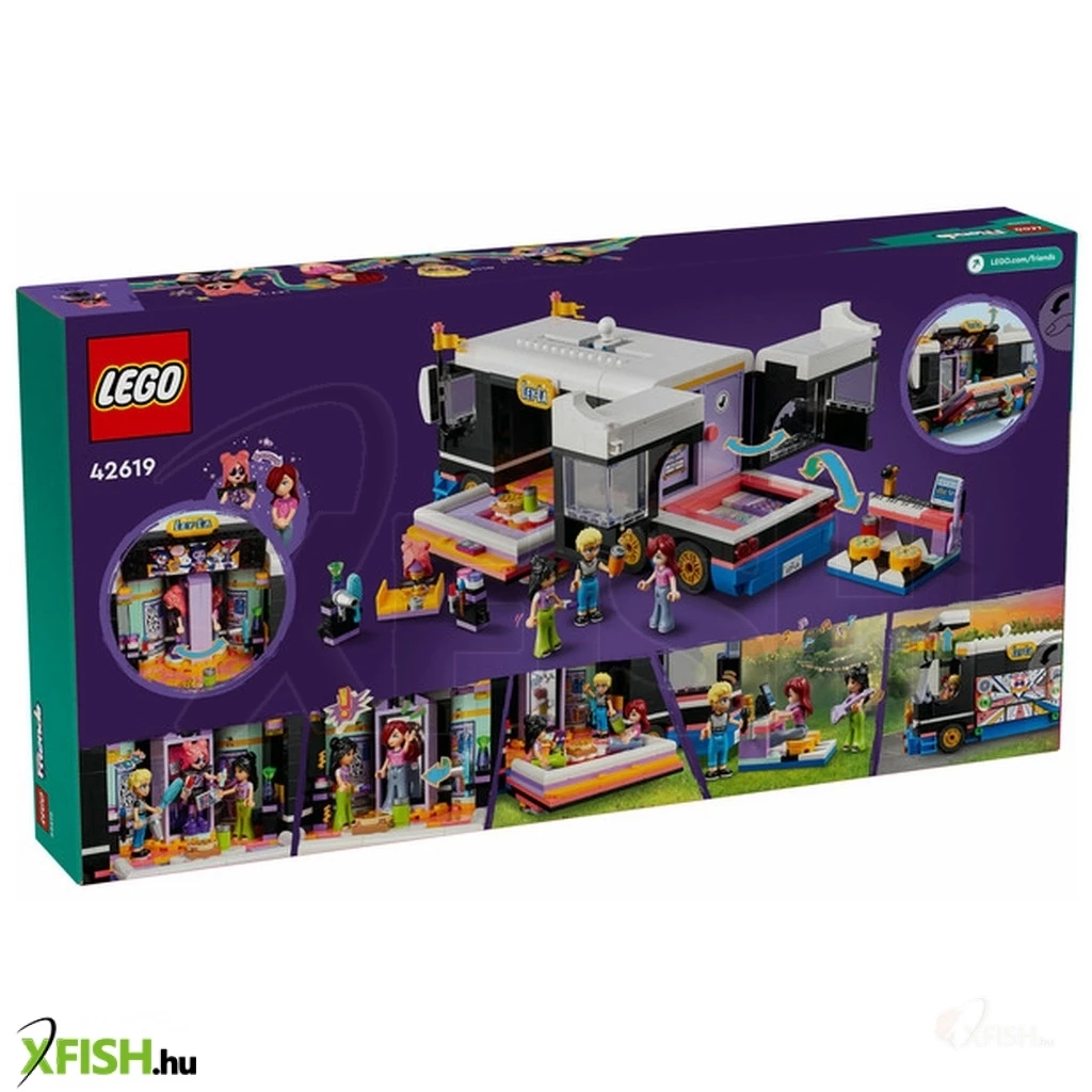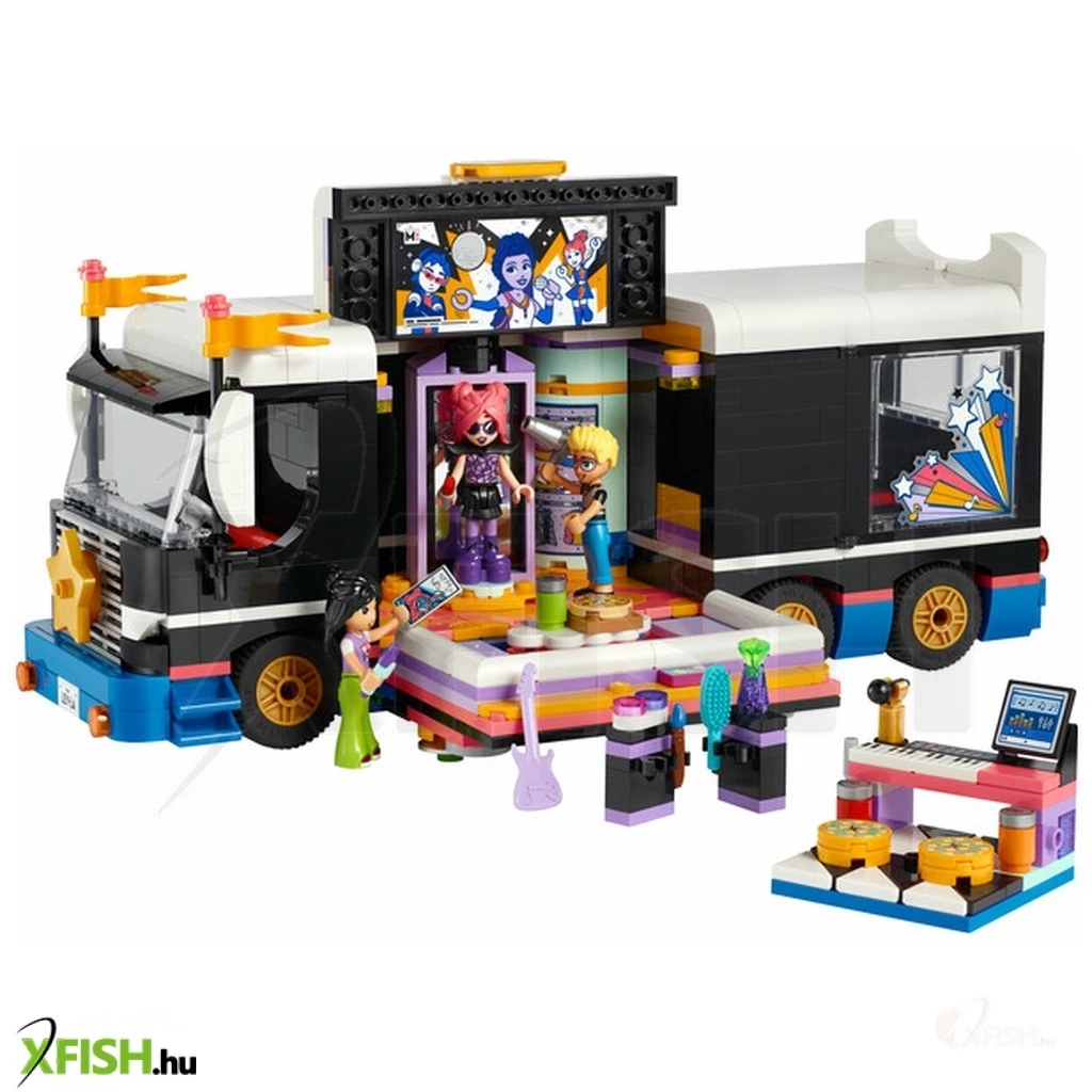 A Lego(R) Friends Popsztár turnébusz játékhoz szetthez egy megépíthető busz és backstage rész tartozik, kiegészítőkkel és 4 Lego Friends figurával.