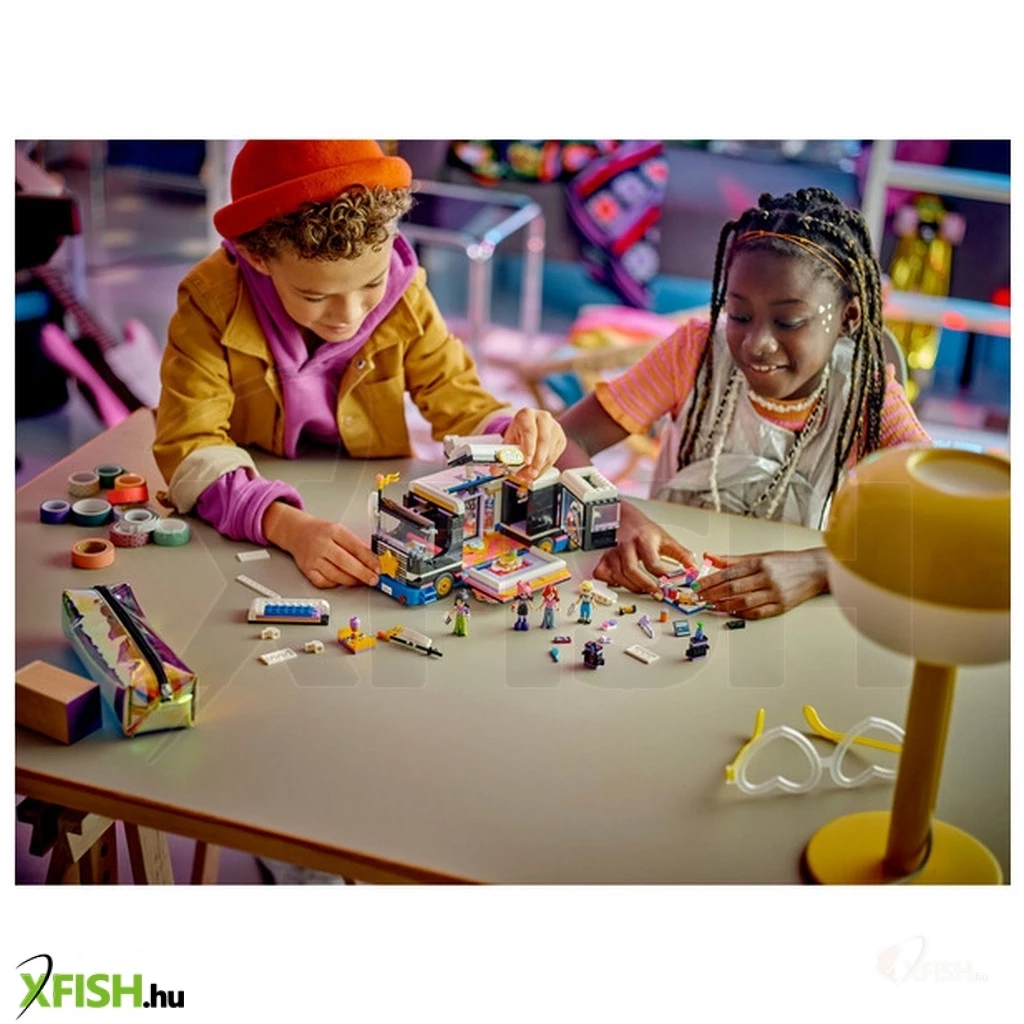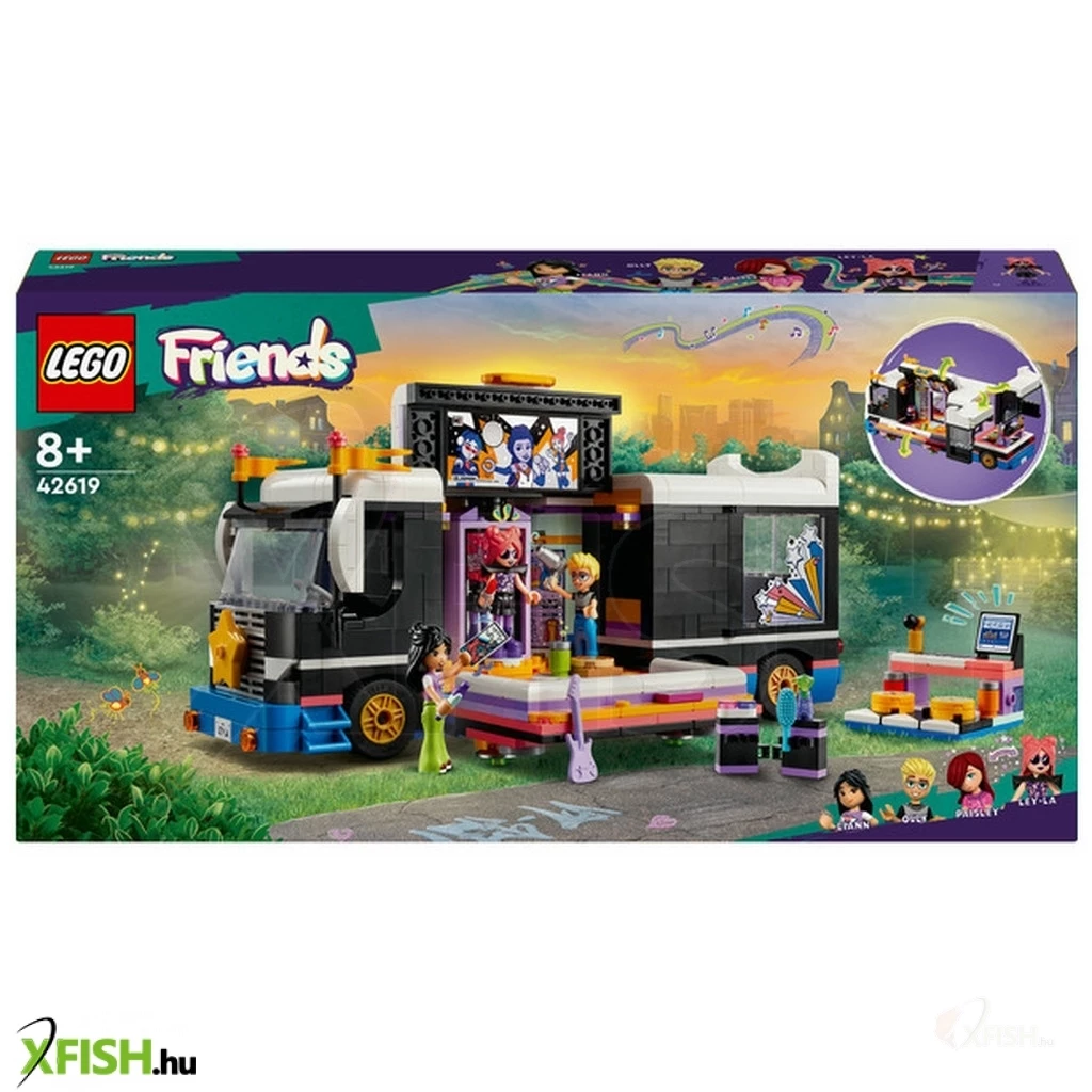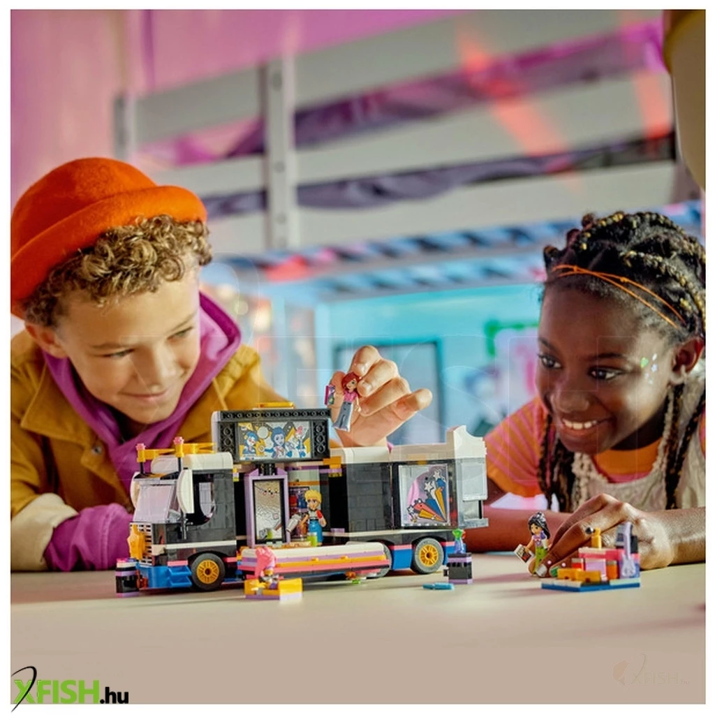 Keltsd életre a játékot a Lego(R) Friends Popsztár turnébusz játékszettel (42619), amely lányoknak, fiúknak és 8+ éves gyerekeknek készült! A szetthez tartozik egy megépíthető busz, egy backstage, kiegészítők és 4 Lego Friends karakter. A gyerekek elmesélhetik a történetet, hogyan változik a szégyenlős Paisley szupersztár előadóvá, Ley-Lává, és a tükör segítségével felszínre hozhatják a színpadi karakterét. Rengeteg barátságról szóló történetet képzelhetnek el, például Olly segít elkészíteni az énekes ruháját, Liann találkozik a kedvenc sztárjával, Ley-Lával. A busz elöl, oldalt és hátul is kinyitható, így fel lehet fedezni a belsejét, ahol egy backstage rész található hangstúdióval, szintetizátorral, gitárral, ágyakkal és fürdőszobával. Az építőszetthez olyan kiegészítők is tartoznak, mint egy autogrammal ellátott fénykép, válldíszek, cipők, smink és egy mobiltelefon. Ez a játék jármű remek ajándék lehet azoknak a gyerekeknek, akik szeretik a zenét és a vidám játékot. A játék arra is kiváló, hogy segítse a gyerekek szociális és érzelmi készségeinek a fejlődését.