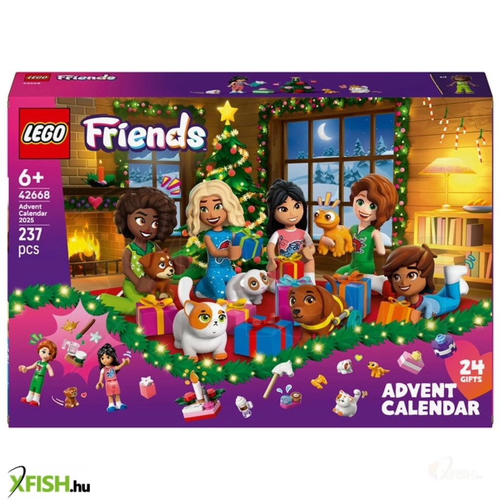 A LEGO Friends 42668 adventi naptár 2025 egy vidám, meglepetésekkel teli karácsonyi építőkészlet, amely játékos formában teszi izgalmassá az ünnepi visszaszámlálást. A naptár 24 ablak mögött apró LEGO elemeket, minifigurákat és tematikus kiegészítőket rejt, amelyekből nap mint nap új jelenetek és történetek építhetők.