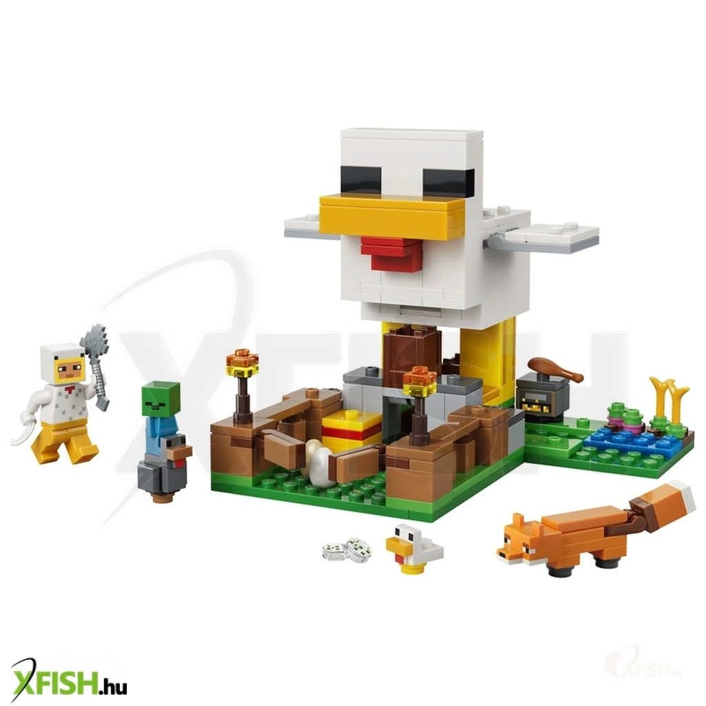 A készlet minifigurákat és állatfigurákat is tartalmaz – például csirke-rajongó karaktert, bébi zombit, rókát és csirkéket –, így a farmon mindig történik valami izgalmas.