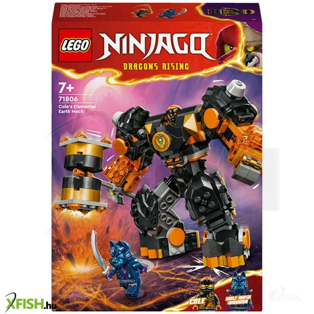 A 7 éves vagy annál nagyobb gyermekek újraalkothatják a ninjago(r) Sárkányok birodalma című sorozat 2. évadának történeteit a Cole elemi földrobotja (71806) kalandjátékkal. A vagány robotnak beállítható karjai és lábai vannak, amelyeket látványos csatapózokba lehet hajlítani, de Cole nehéz páncélja, egy hatalmas kalapács és egy, a minifigura behelyezésére alkalmas vezetőfülke is jár hozzá. Ez a még soha sem látott, testre szabható robot lehetővé teszi, hogy a gyermekek megépítsék a saját robotjukat! A leválasztható láb, kar és törzs 2 másik robot részeivel kombinálható: Sora elemi csúcsrobotja (71807) és Kai elemi tűzrobotja (71808) (külön kaphatók). A gyerekek órákon át élvezhetik a szórakozást, miközben cserélgetik és összeillesztik a részeket, hogy egyedei akciófigurás játékot építsenek. A nindzsajáték 2 minifigurát tartalmaz – Cole katanával és egy Farkas álarcos harcos karddal – így a gyerekek izgalmas nindzsaakciókat játszhatnak el. A készlet megépíthető a Lego Builder app segítségével, amely egy könnyű és intuitív építési kalandon kísér végig téged és a gyermekedet.