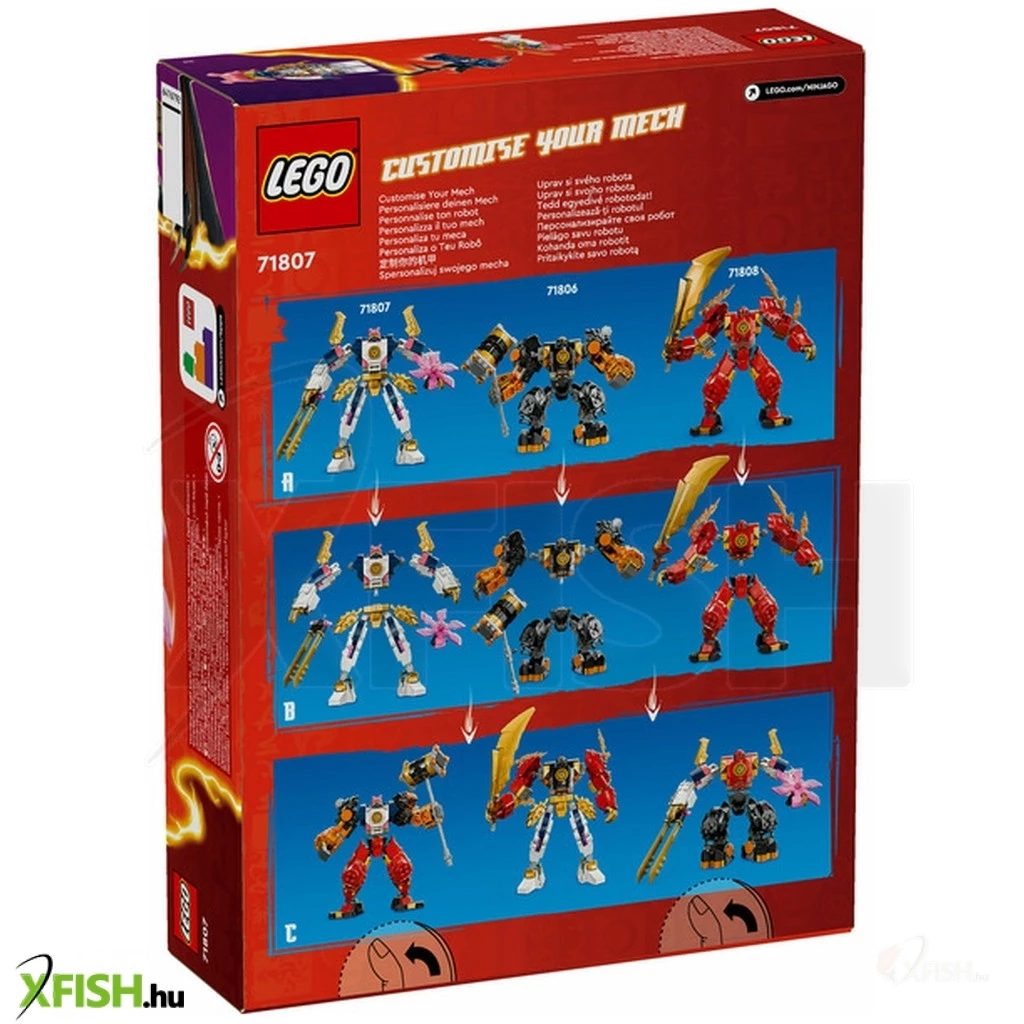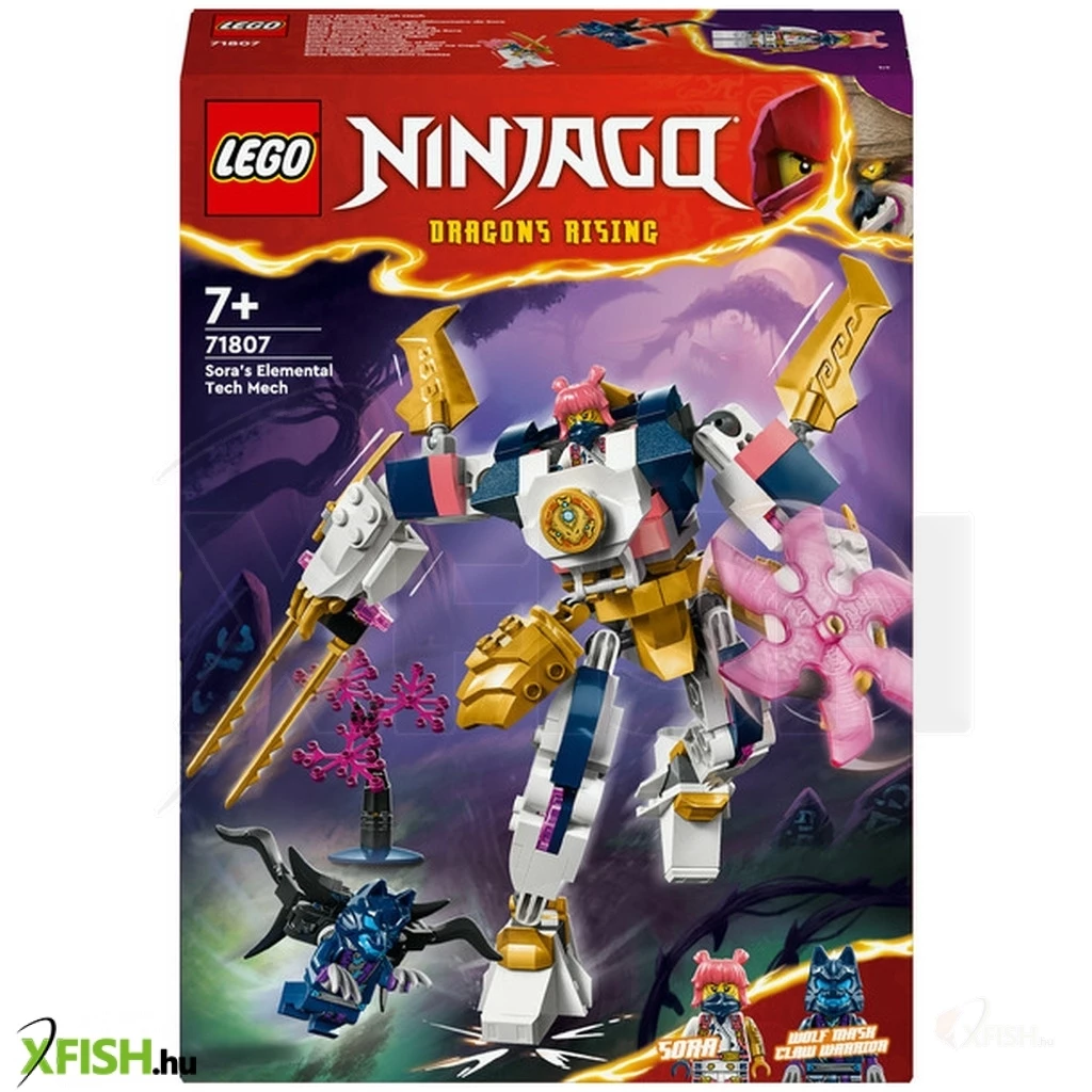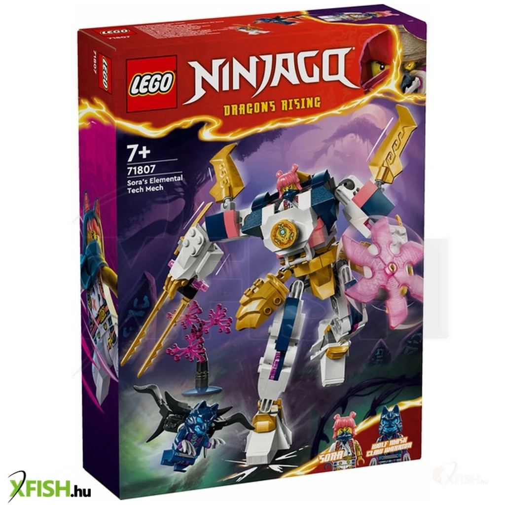 A 7 éves vagy annál nagyobb fiúk és lányok újraalkothatják a ninjago(r) Sárkányok birodalma című sorozat 2. évadának történeteit a Sora elemi csúcsrobotja (71807) kalandjátékkal. A vagány robotnak beállítható karjai és lábai vannak, amelyeket látványos csatapózokba lehet hajlítani, emellett egy hatalmas kard, egy forgó penge és egy vezetőülés, ahová beültethető a nindzsa-minifigura. Ez a még soha sem látott, testre szabható robot lehetővé teszi, hogy a gyermekek megépítsék a saját robotjukat! A leválasztható láb, kar és törzs 2 másik robot részeivel kombinálható: Cole elemi földrobotja (71806) és Kai elemi tűzrobotja (71808) (külön kaphatók). A gyerekek órákon át élvezhetik a szórakozást, miközben cserélgetik és összeillesztik a részeket, hogy egyedei akciófigurát építsenek. A nindzsajáték 2 minifigurát tartalmaz – Sora 2 katanával és egy Farkas álarcos harcos – így a gyerekek izgalmas nindzsaakciókat játszhatnak el. A készlet megépíthető a Lego(R) Builder app segítségével, amely egy könnyű és intuitív építési kalandon kísér végig téged és a gyermekedet.
