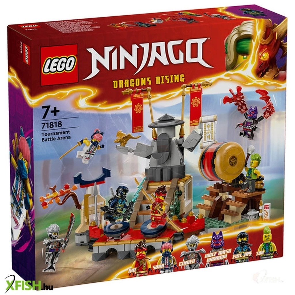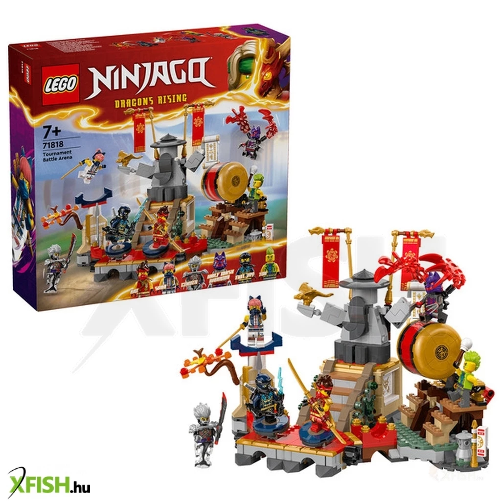 A részletgazdag A bajnokok küzdőtere (71818) szettel a 7+ éves fiúk és lányok eljátszhatják a ninjago(r) Sárkányok birodalma 2. évadának drámai végső leszámolását. A nindzsacsatákkal teli játékszett rengeteg interaktív tulajdonága hosszú órákon át tartó játékidőt nyújt a gyermekeknek. Majd egy igazán csodálatos kiállítható modell lesz a polcon vagy az éjjeliszekrényen. Ez a Lego(R) ninjago szett 2 mozgó platformot tartalmaz, így a gyerekek egy nindzsa és egy gonosztevő közt vívott, izgalmas csatákat játszhatnak el. A szett része egy hatalmas dob, amelyet lelökhetnek az állványról, hogy a küzdőtérre guruljon, és egy lépcső, amely egy kar meghúzásával összecsukódik, így a bármelyik figura a földre gurulhat. Ez a megépíthető, gyerekeknek készült nindzsajáték 6 ninjago minifigurát tartalmaz. A bajnoki páncélt viselő, még soha nem látott rövid katanakiegészítőkkel felfegyverzett Kai és Sora nindzsák küzdenek meg egy sor gonosztevővel: Cinder, egy farkas álarcos harcos, valamint Gonosz Jay és Tox, akikkel csak ebben a szettben találkozhataz.