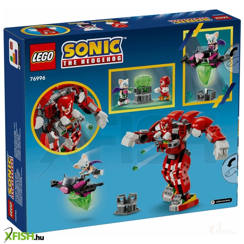 A 8 éves vagy nagyobb, Sonic rajongó fiúk és lányok vidám kalandokban vehetnek részt a Lego(R) Sonic the Hedgehog™ Knuckles őrző páncélja (76996) játékszettel. A gyerekeket arra ösztönzik a Sonic és a többi videójáték-szereplő által inspirált szökések, hogy rengeteg küldetéseket találjanak ki Knucklesnek és Rouge-nak, miközben megépítik a szettet, és fantáziadús módokon eljátsszák a Mester Smaragd eltűnését és visszaszerzését a vitorlázó és a páncél segítségével. Ez a vidám, gyerekeknek szóló Sonic játék rengetek akciót és történetmesélési lehetőséget kínál. A gyerekek több módon is eljátszhatják, hogy Knuckles megvédi a Mester Smaragdot, vagy hogy Rouge ellopja azt, és megszökik. Az akciófigurákat kedvelő gyerekek mind büszkék lennének egy ilyen részletgazdag páncélra. A gyors, akciókkal teli szórakozás találkozik a kreatív játéklehetőségekkel a Lego Sonic the Hedgehog™ gyermekeknek szóló szettben. A Kék Süni rajongói imádni fogják, hogy inspiráló jeleneteket alkothatnak 3 kedvenc Sonic játékfigurájukkal. A gyerekek könnyű és intuitív építési kalandokban vehetnek részt a Lego Builder app segítségével, amelyben felnagyíthatják, 3 D-ben elforgathatják és elmenthetik a készleteket, valamint nyomon követhetik a haladásukat.