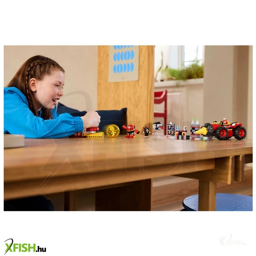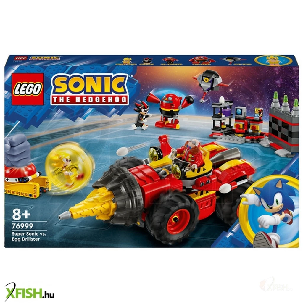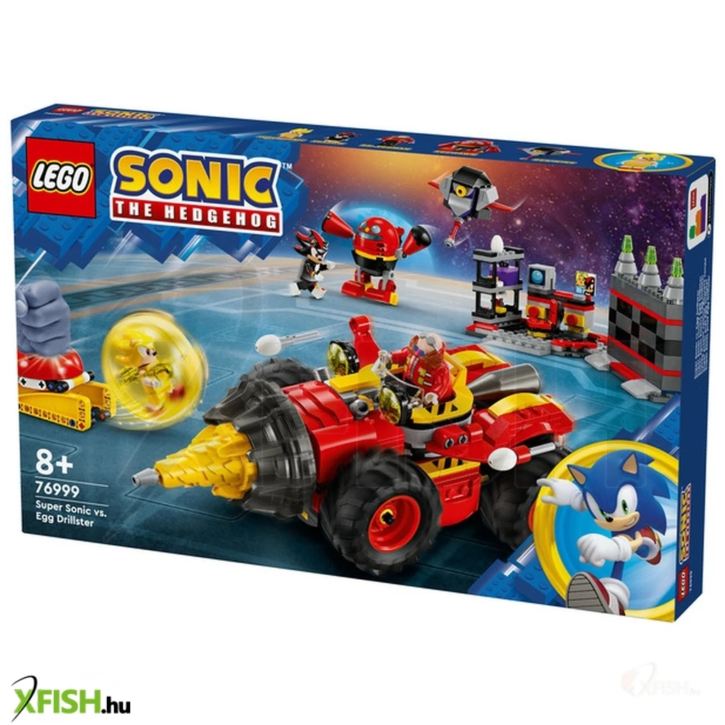 Induljon a 8+ éves videójáték-rajongók képzelőerejének turbófeltöltése a Super Sonic vs Egg Drillster (76999), hősökkel és kalandokkal teli építőjátékkal! Ez a gyűjthető Lego(R) Sonic the Hedgehog™ videójátékos ajándék tartalmaz egy forgó fúrófejjelrendelkező Egg Drillster járművet, egy dokkot a leválasztható lebegő járműnek, egy gyorsulógömb-kilövőt, egy gyorsulógömböt, és egy labort betörhető fallal. 7 karaktert is tartalmaz a videójátékból: Shadow, Egg Pawn, Dr. Eggman, Pocky, Pecky, Egg Pawnbadnik és „átprogramozott” Gun Wing.