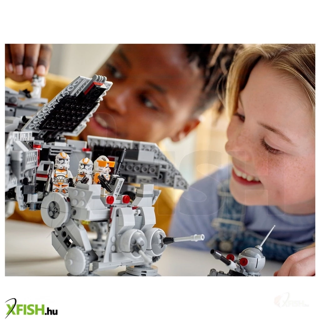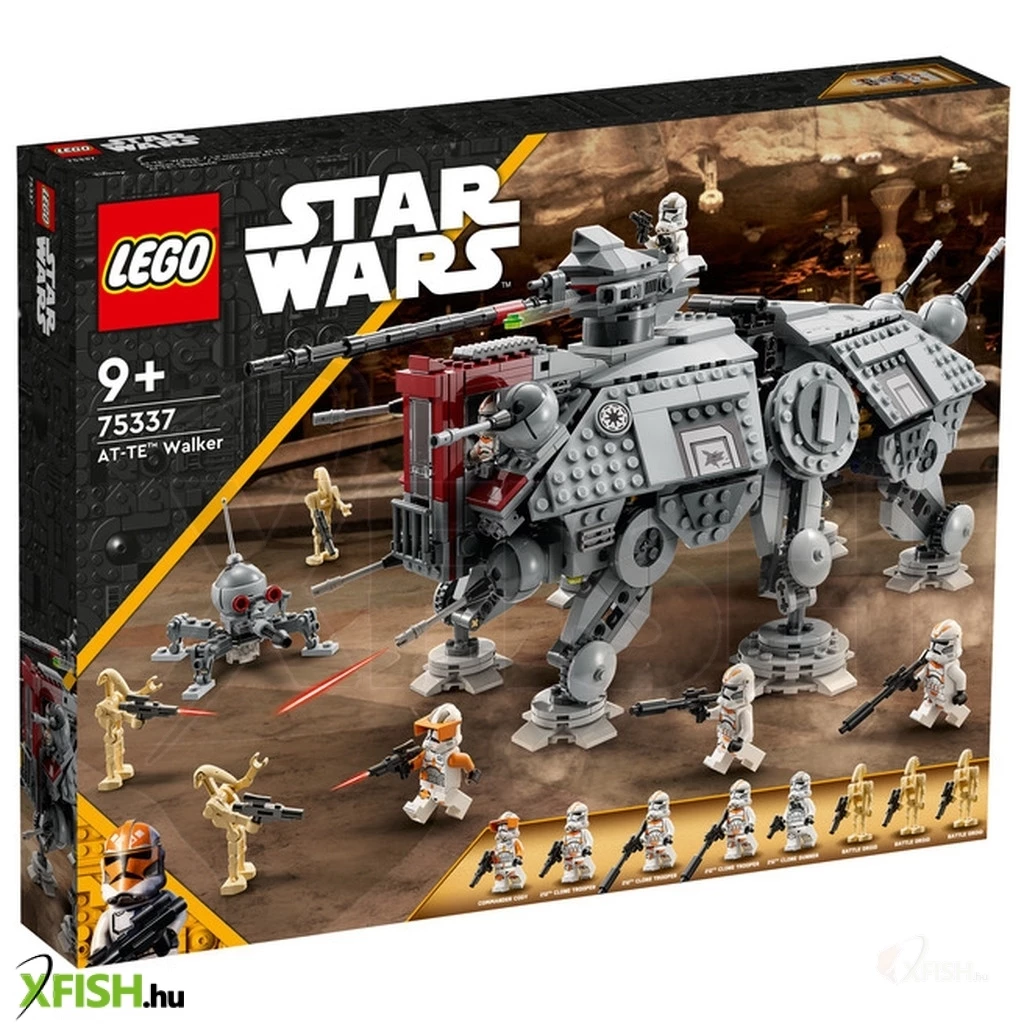 Játszd el az utapaui csatát ezzel a fantasztikus Lego(R) Star Wars™ at-te lépegetővel (75337)! Nagyszerű ajándék a Star Wars: A Sith-ek bosszúja című film 9 éves vagy nagyobb rajongóinak. Az építőjáték beállítható lábakat, egy 360 fokban elforgatható, felemelhető nehéz lézerágyút 2 korongvetővel, egy levehető minifigura-pilótafülkét és 2 részletes kabint tartalmaz, ahol összesen akár 7 Lego minifigura is elfér. Mindkét kabin kinyitható, ami megkönnyíti a játékot, a kinyújtható karral pedig egyszerűen felemelheted és mozgathatod az AT-TE-t. Akciódús csata A készlet 5 Lego minifigurát tartalmaz – Cody parancsnokot, egy 212-es Klón ágyúkezelőt és 3 db 212-es Klónkatonát –, amikkel szembeszállhatsz 3 harci droid Lego figurával és egy megépíthető törpe pókdroiddal, emellett klassz, válogatott harci eszközök is várnak rád. Az építési útmutatót megtalálod a dobozban és a Lego Építési útmutatók alkalmazásban, ami interaktív képmegjelenítő eszközökkel fokozza a kreatív élményt.